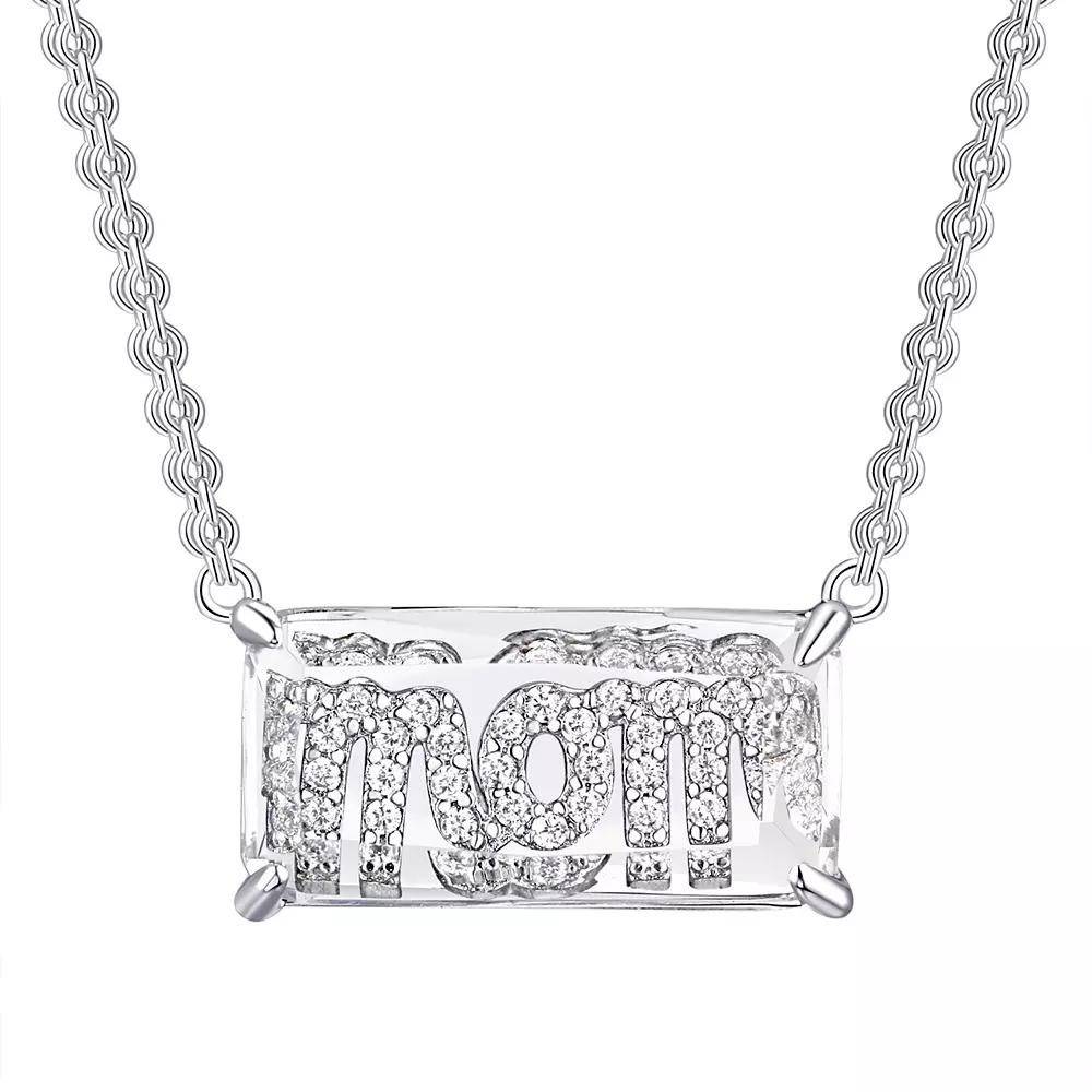 Show your mother how much you love her with this beautiful silver-plated cubic zirconia accent mom double chain necklace. Show your mother how much you love her with this beautiful silver-plated cubic zirconia accent mom double chain necklace. Chain length: 18 in. Chain type: cable Clasp: spring-ring Metal: brass Plating: fine silver Finish: polished Additional details: cubic zirconia accents Packaging: boxed Gemstones may have been treated to enhance their appearance. Special care may be required. Please visit our Gemstone Treatment & Special Care Guide for more information. Please note, due to the high value of this item, a signature may be required upon delivery. Size: 18". Color: White. Gender: female. Age Group: adult. Material: Silver Plate.