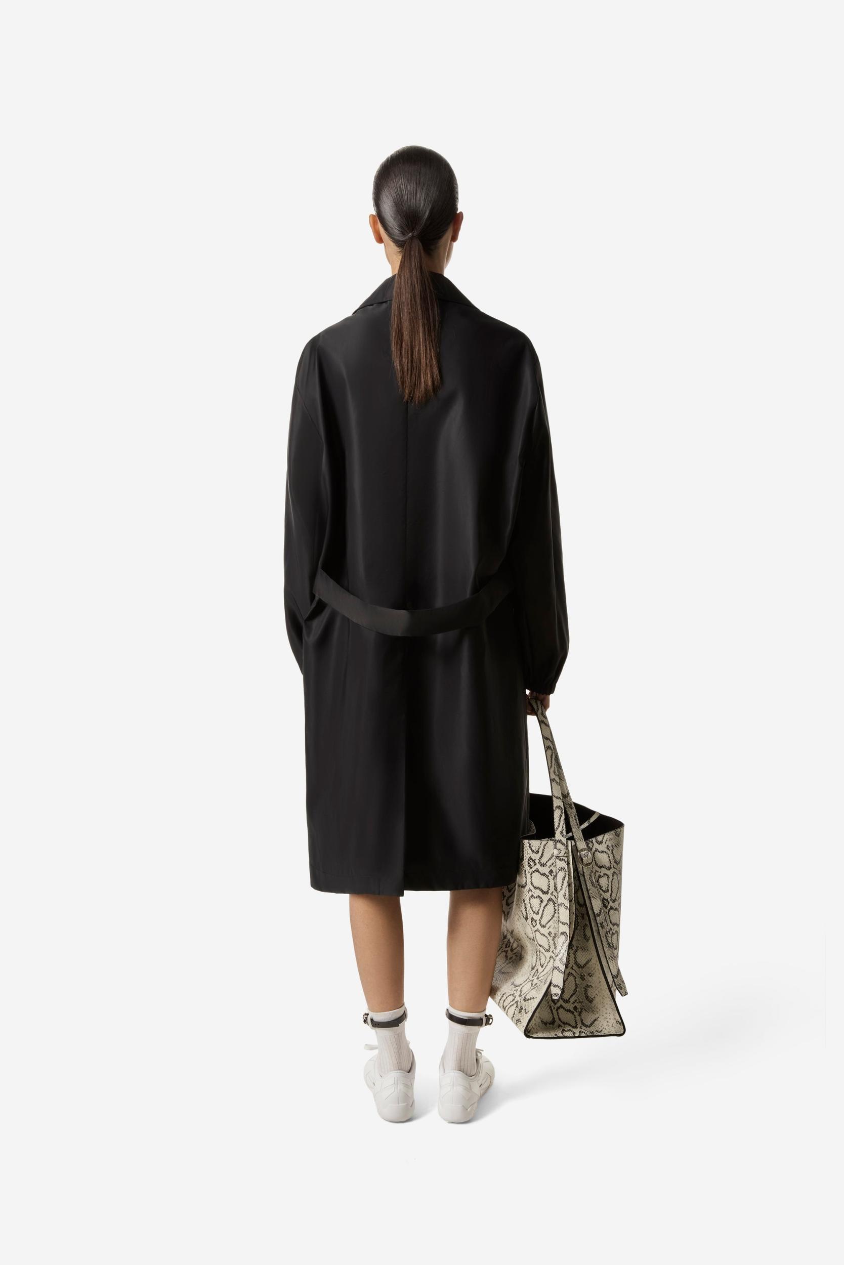 Knee-length cotton lined trench.