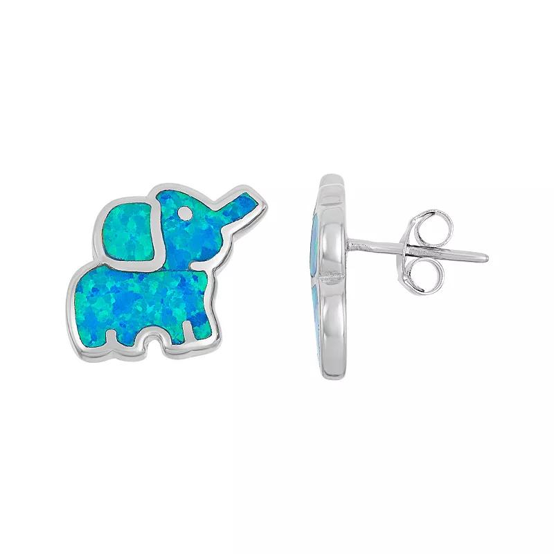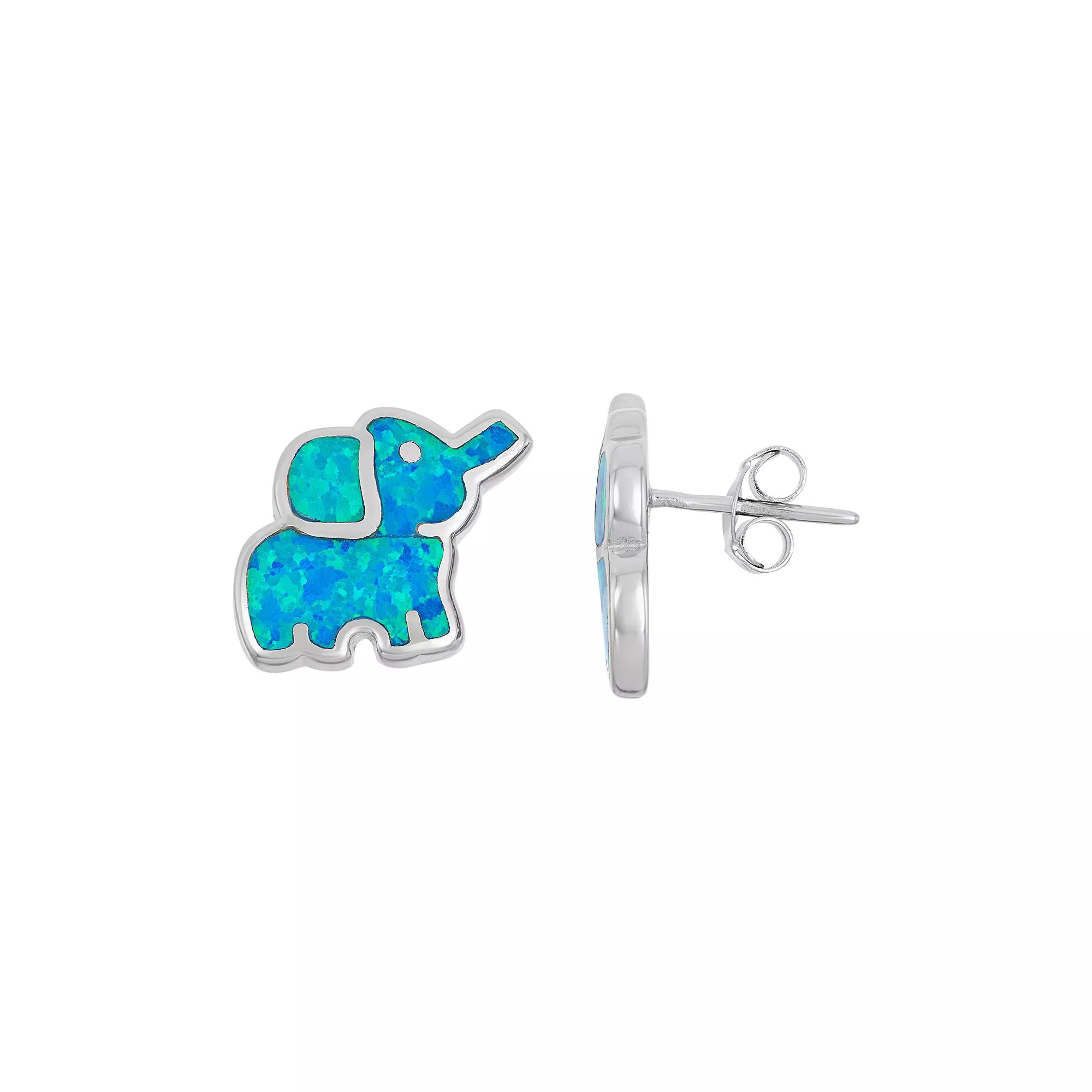 Featuring an elephant motif highlighted with lab-created blue opal inlays, these sterling silver stud earrings make a charming addition to any outfit. Comes in a gift box.EARRING DETAILS Length: .51 in. Backings: post Metal: rhodium-plated sterling silver STONE DETAILS Stone type: lab-created blue opal Setting: inlay Size: One Size. Gender: female. Age Group: adult.