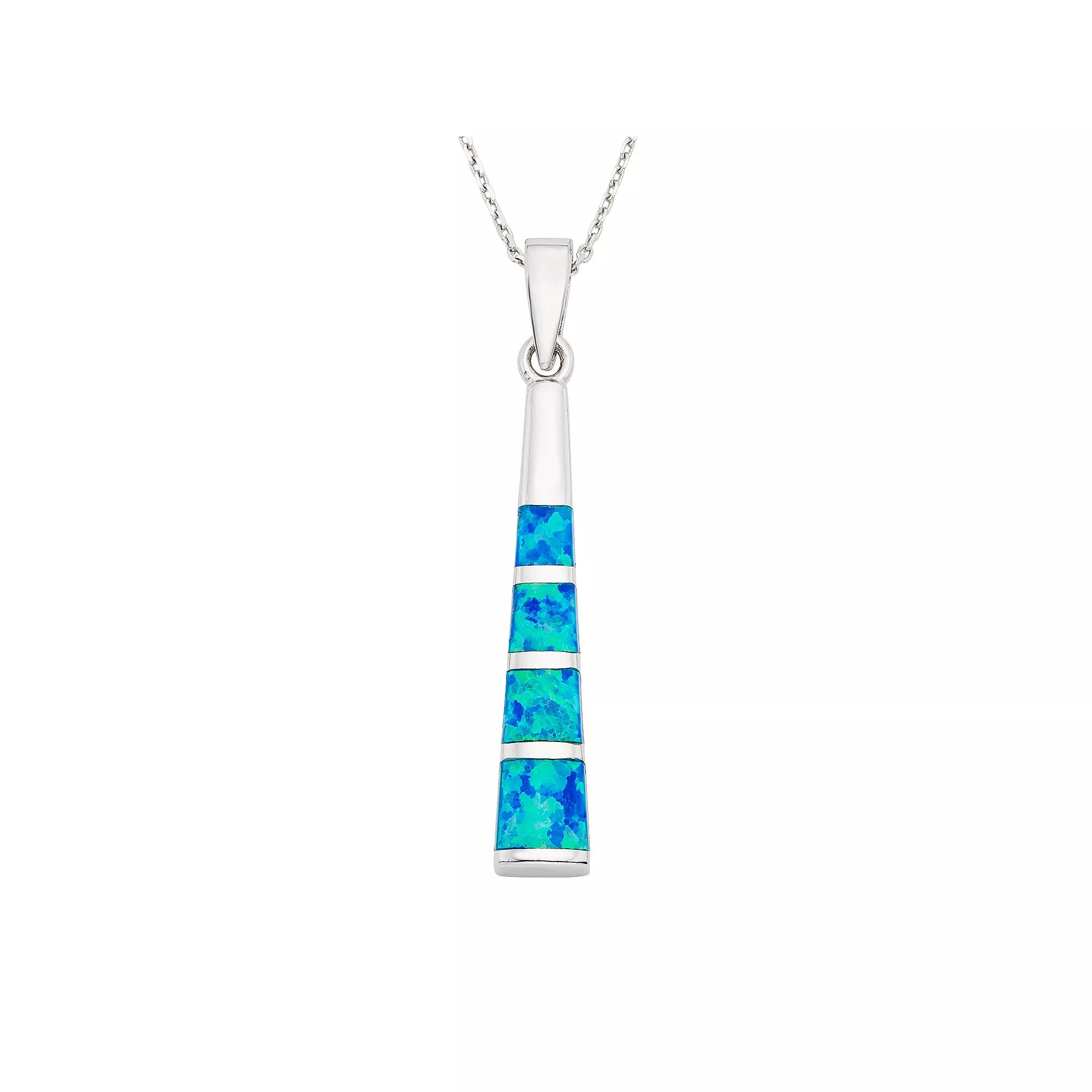 Adorned with lab-created blue opal inlays, this stick pendant offers a modern yet timeless look. Comes in a gift box. Click on this JEWELRY & WATCHES GUIDE to learn about fit, styles, materials and more!PENDANT DETAILS Pendant length: 1.61 in. Chain length: 18 in. Clasp: spring-ring Metal: rhodium-plated sterling silver STONE DETAILS Stone type: lab-created blue opal Setting: inlay Size: 18. Gender: female. Age Group: adult.