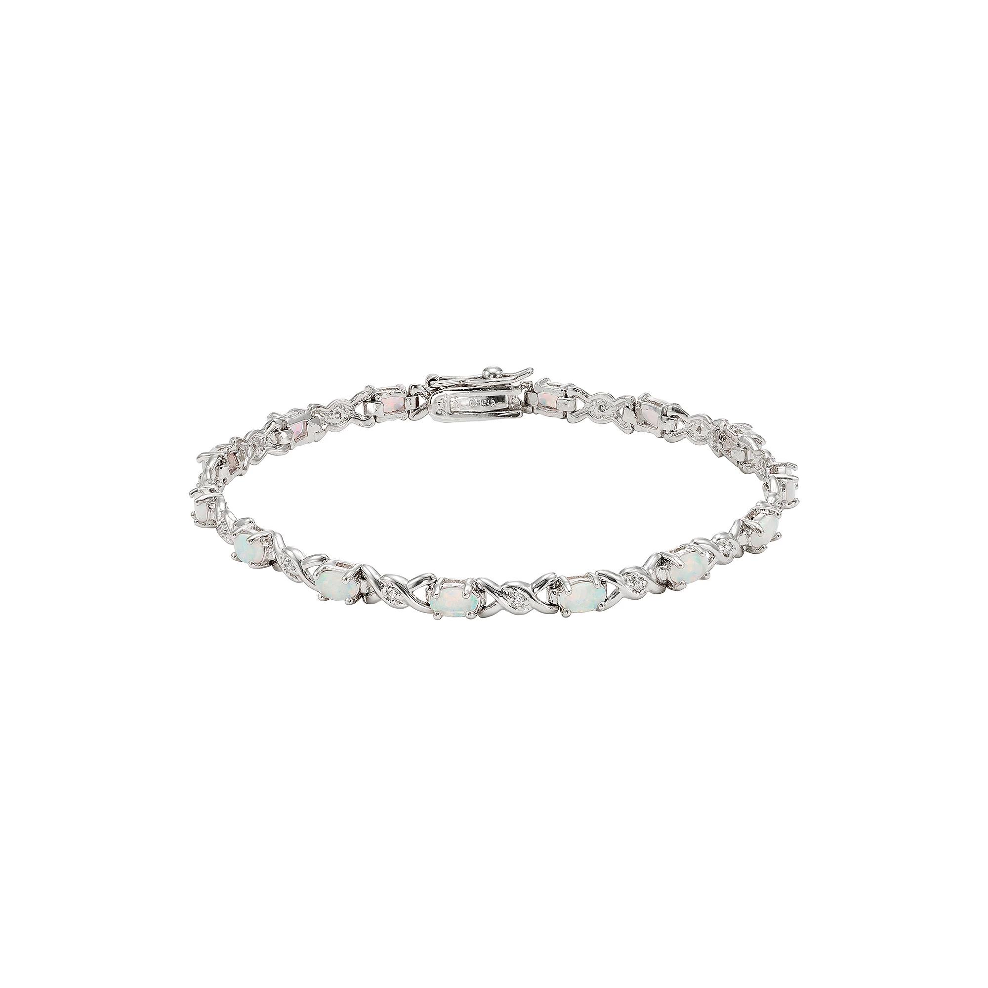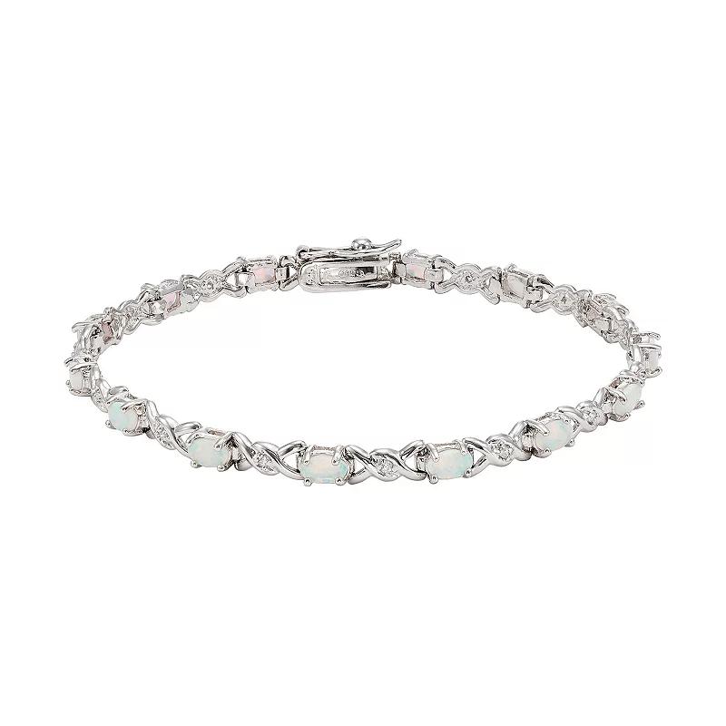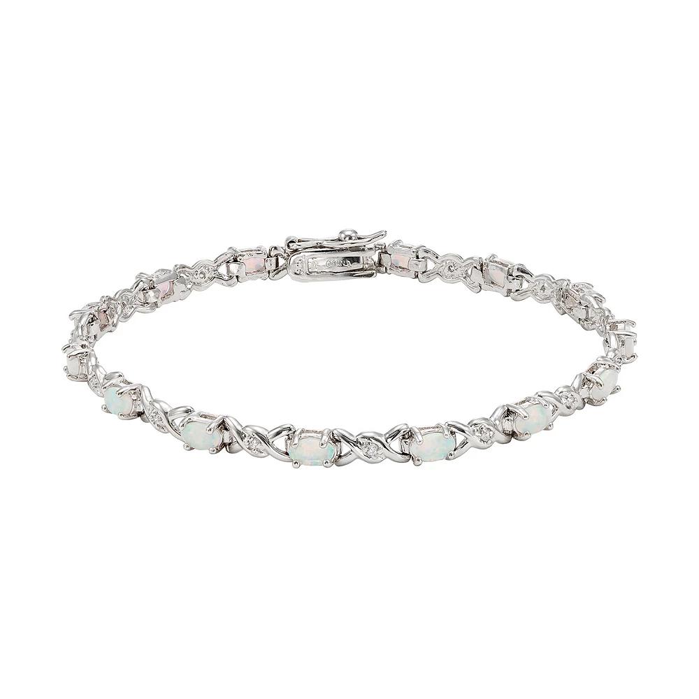Featuring lab-created opals and shimmering cubic zirconia stones, this XO bracelet offers a luxurious look. Comes in a gift box. BRACELET DETAILS Length: 7 in. Clasp: safety Metal: rhodium-plated sterling silver STONE DETAILS Stone type: lab-created opal Shape: oval Setting: prong CUBIC ZIRCONIA DETAILS Shape: single Setting: prong Size: 7". Color: White. Gender: female. Age Group: adult.