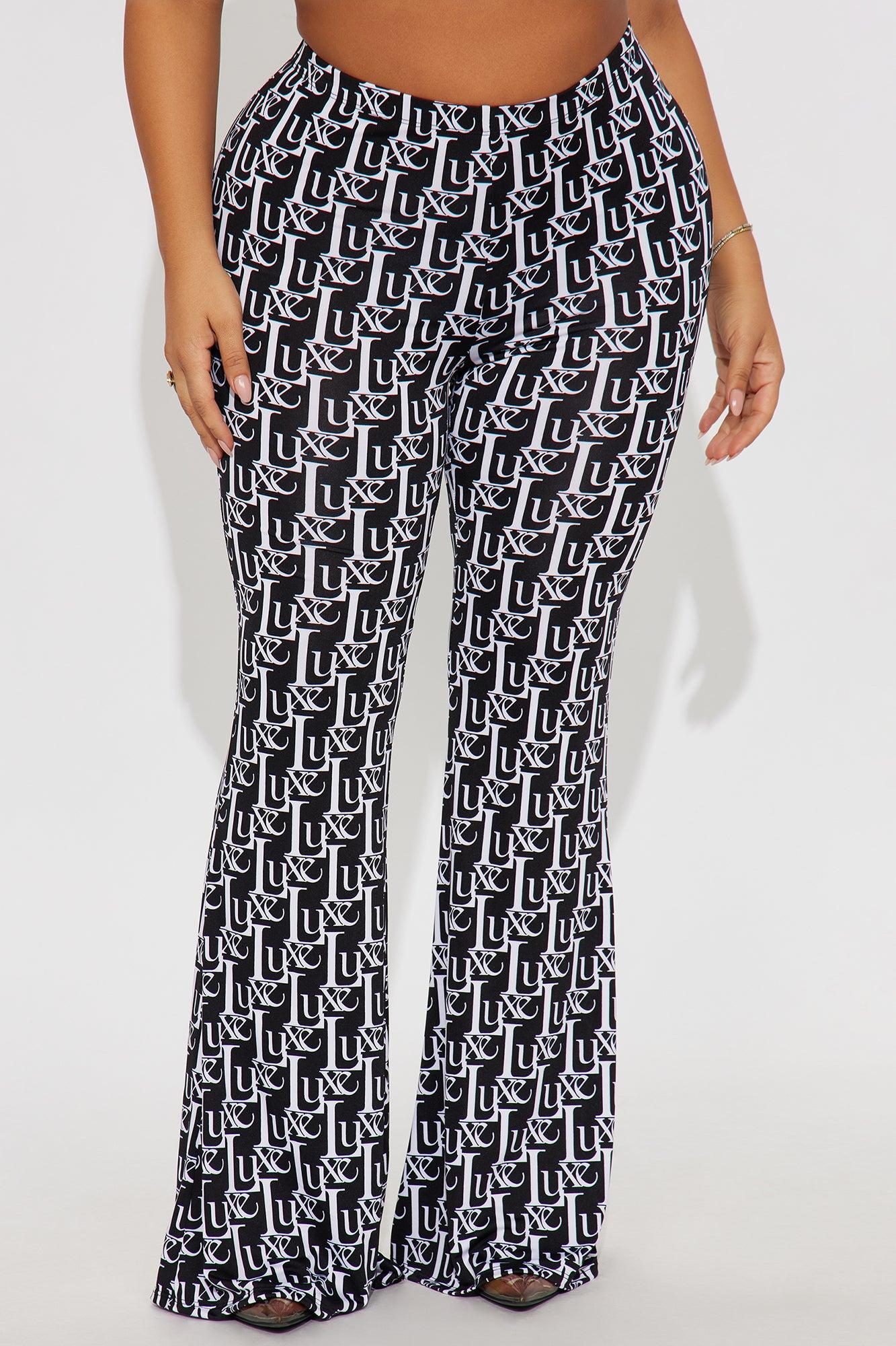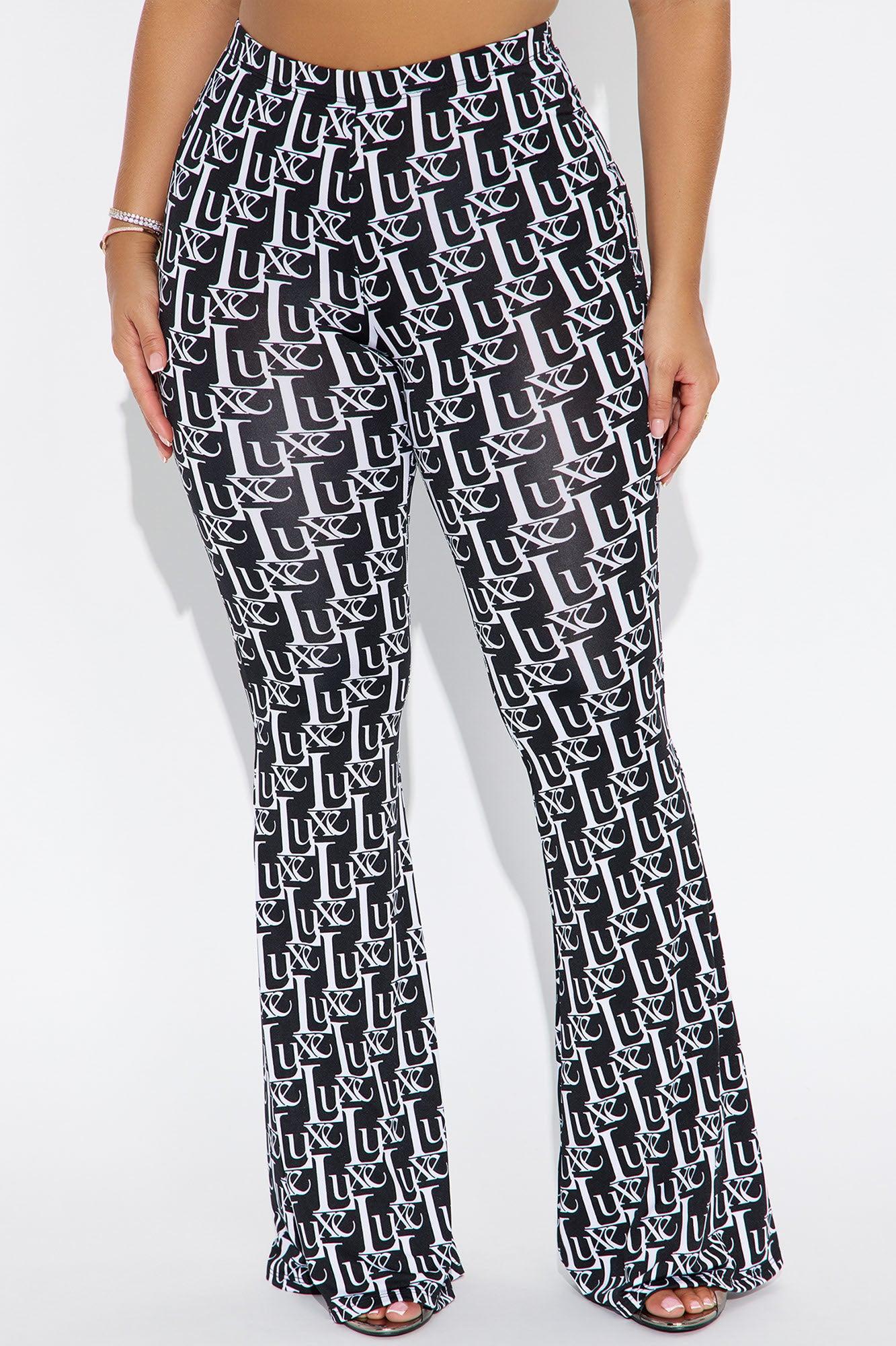 Available In Black/White. Flare Pant Stretch High Rise Regular 33" Inseam High Stretch Fabric Disclaimer: Print Placement May Vary Self: 93% Polyester 7% Spandex Imported California Proposition 65WARNING: Cancer and Reproductive Harm - www.P65Warnings.ca.gov.