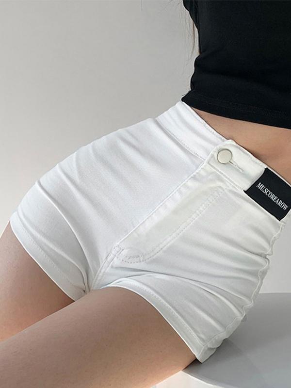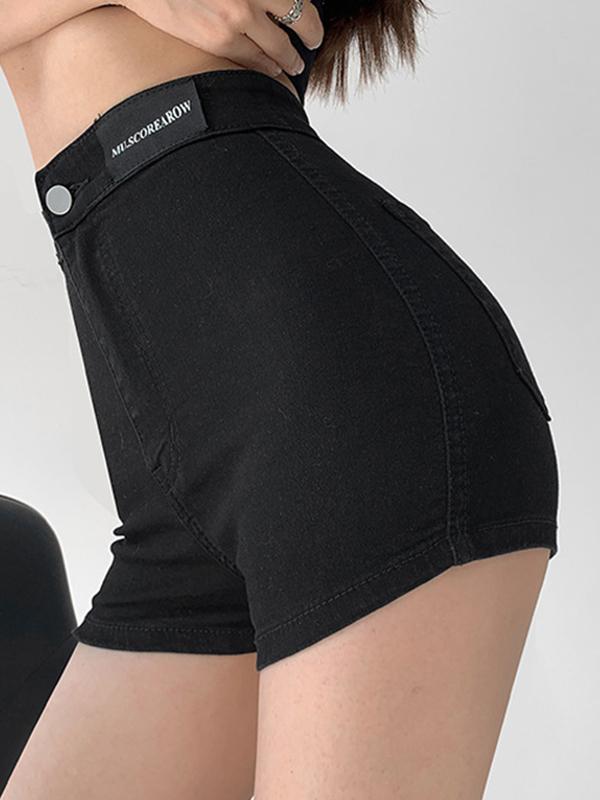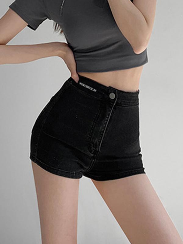 Labeling High Rise Slim Thin Denim Shorts