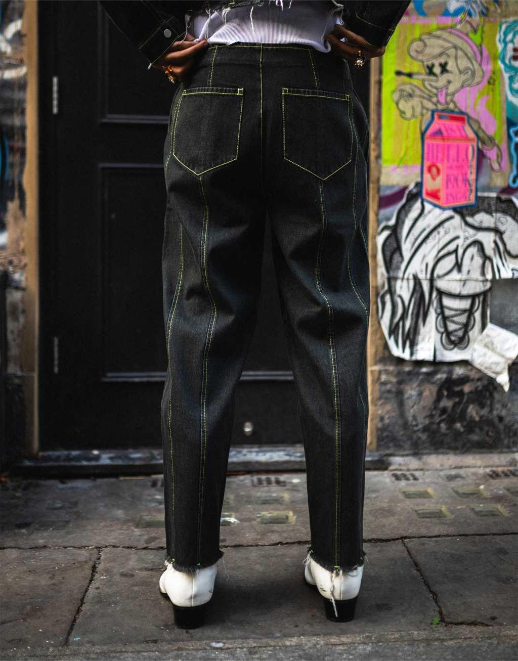 Labelrail x OliBrom seam detail straight leg jeans in washed black - part of a set