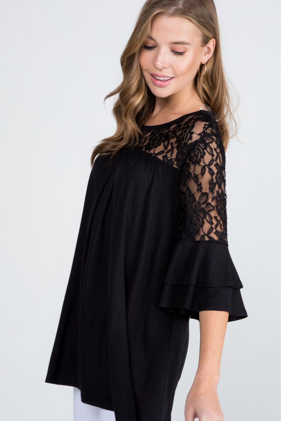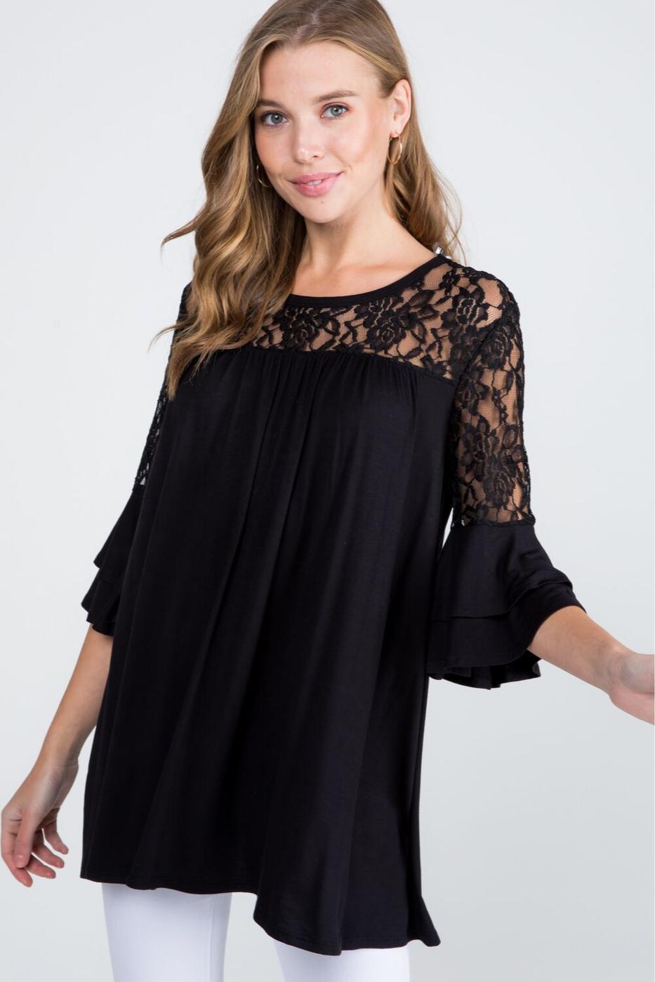 Black Lace Ruffle Top