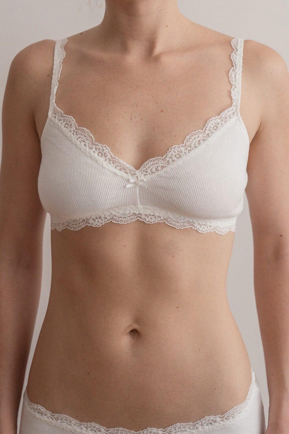White bra with lace, bow, adjustable straps.All intimates are final sale.Fabrics: 100% cottonMeasurements: 12" (31 cm) length, 13" (33 cm) bust Made in: Europe