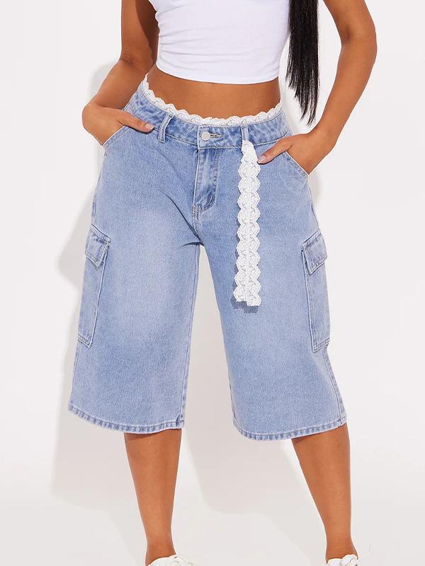 Lace Edging Denim Shorts