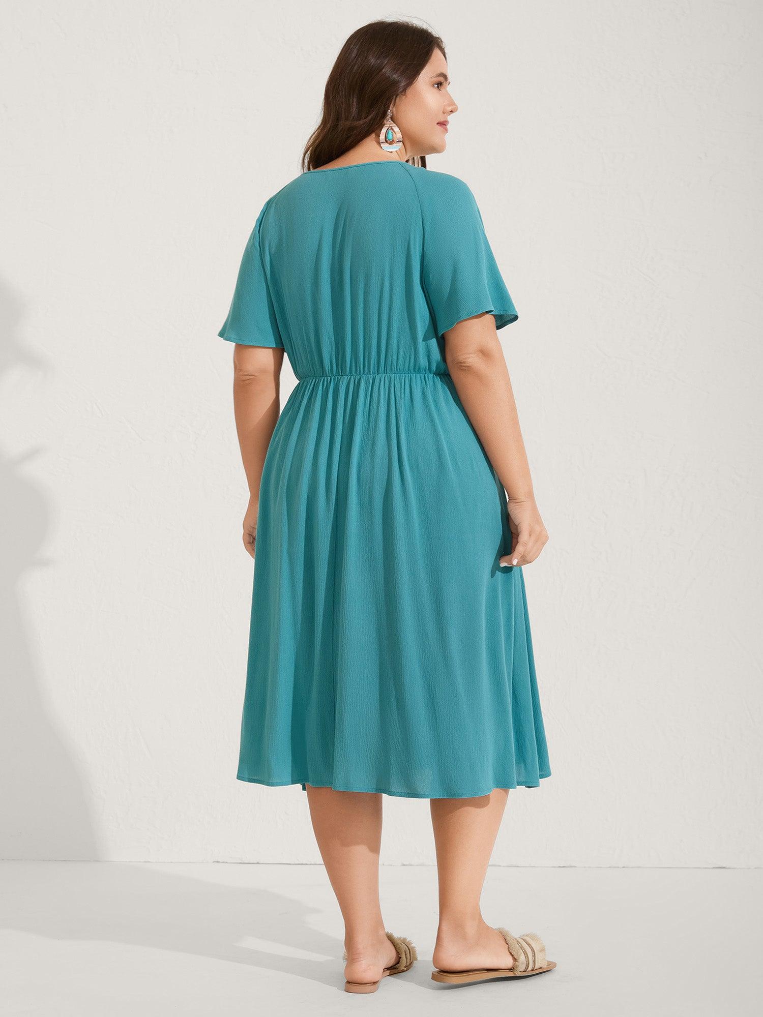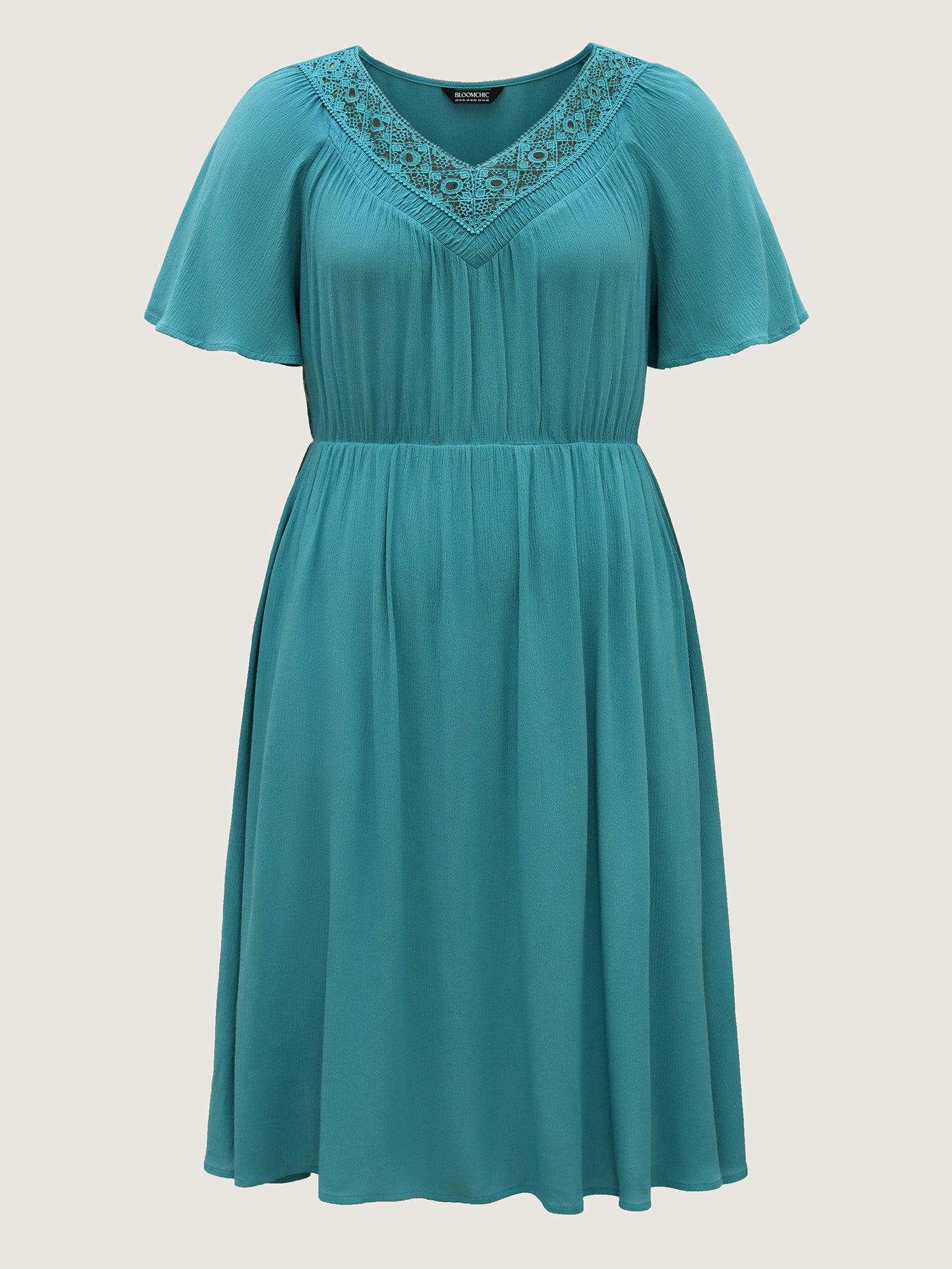 Shop Lace Neck Flared Sleeve Midi Dress now and redefine your style with confidence at BloomChic. Tailored for mid and plus-size women. This trendy Dress, sizes 10-30. You can never go wrong with BloomChic Dresses. Color:Arctic;Neckline:V-neck;Sleeve Type:Ruffle Sleeve;Prints:Non;Pocket:Side seam pocket;Belt:No-belt;Closure Type:Non