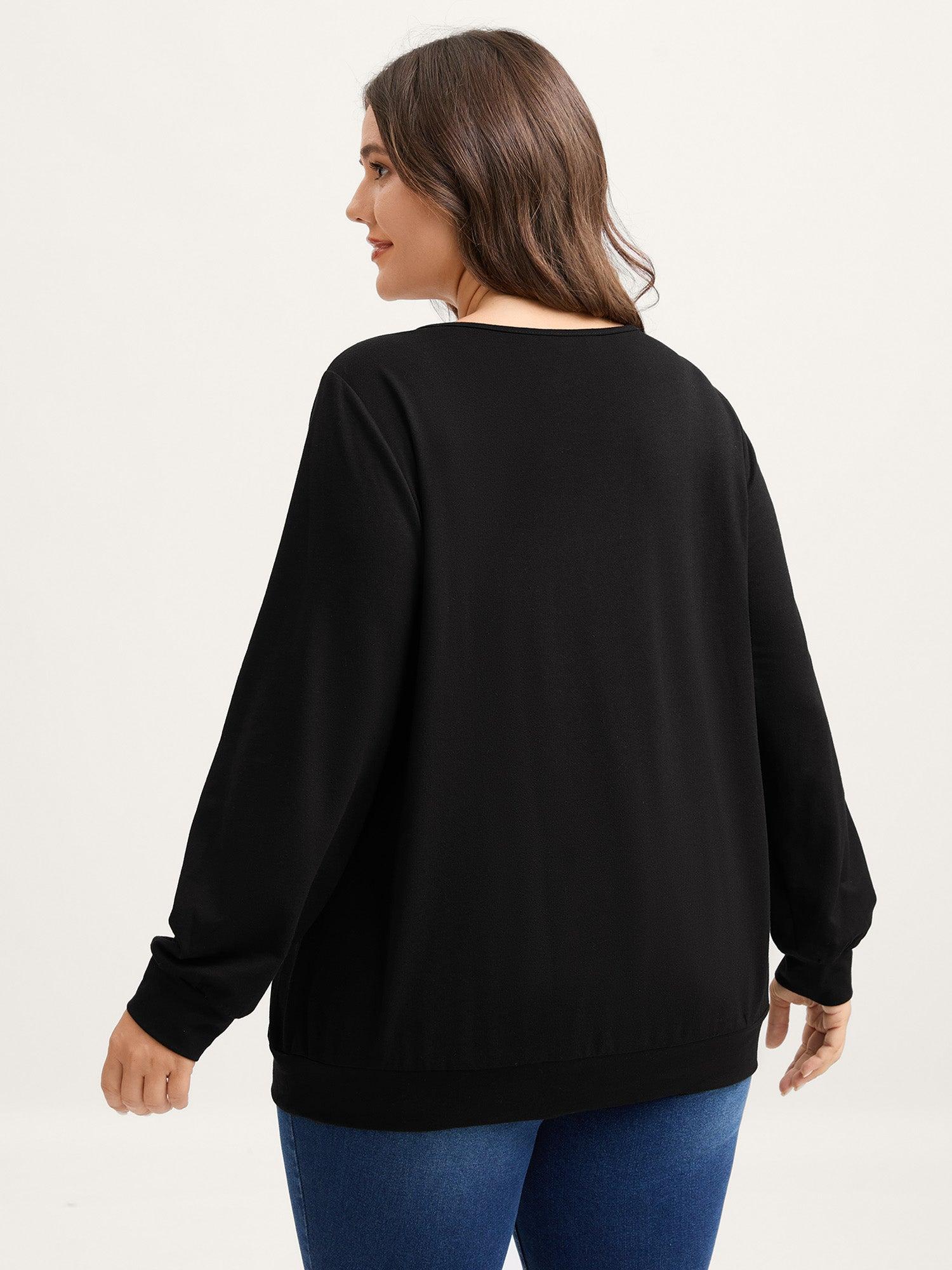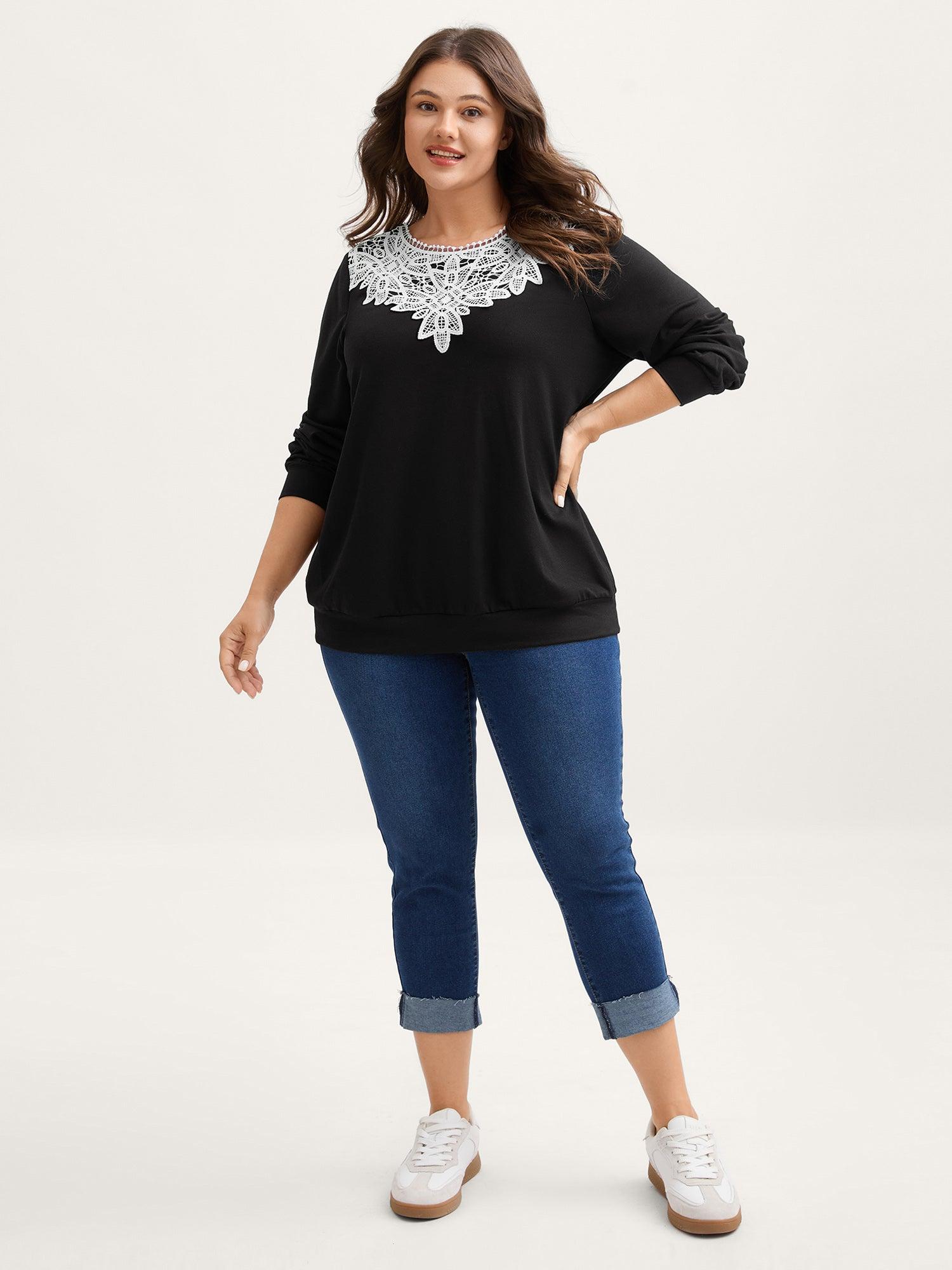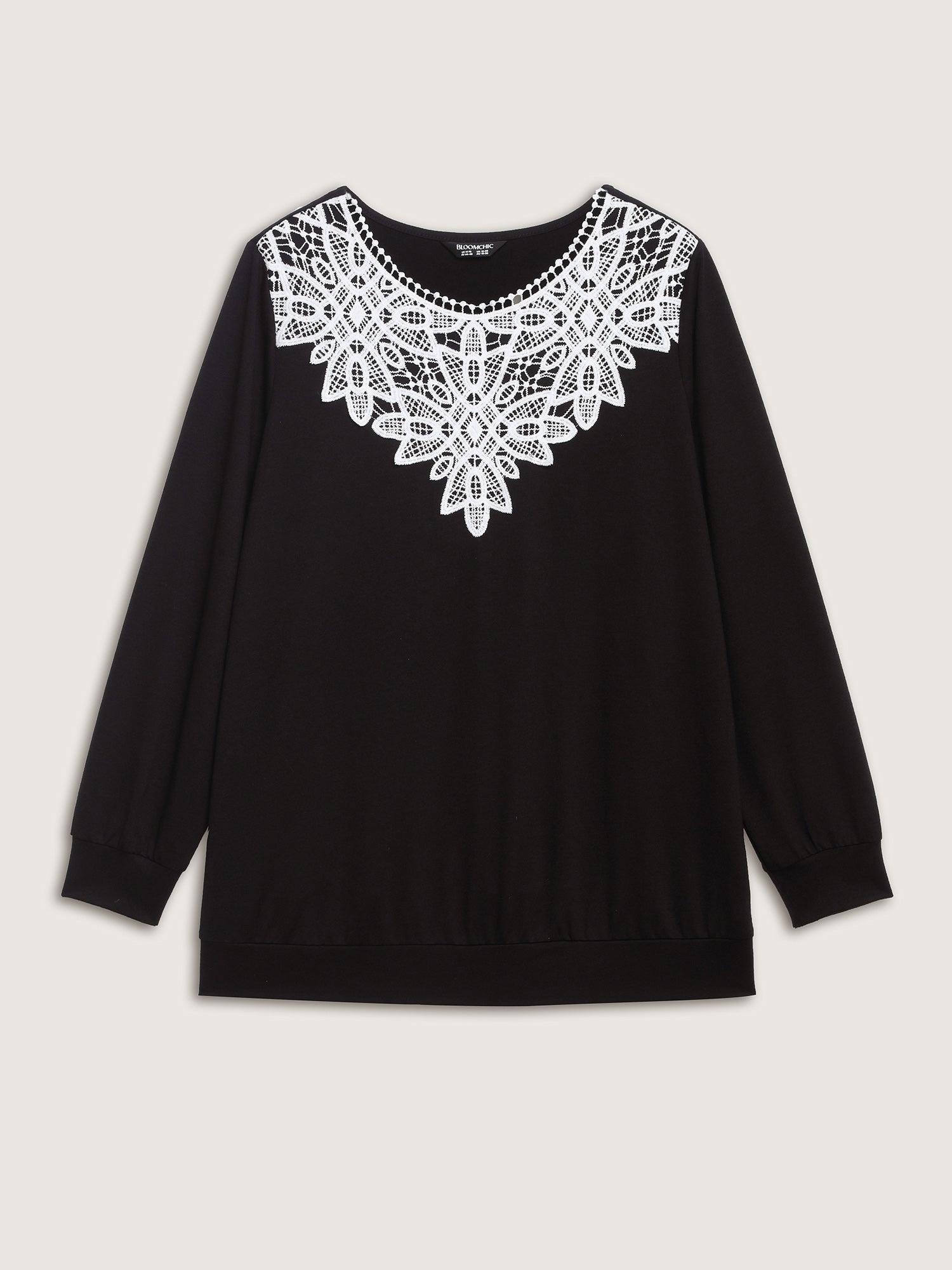 Lace Neckline Color Contrast Sweatshirt Female