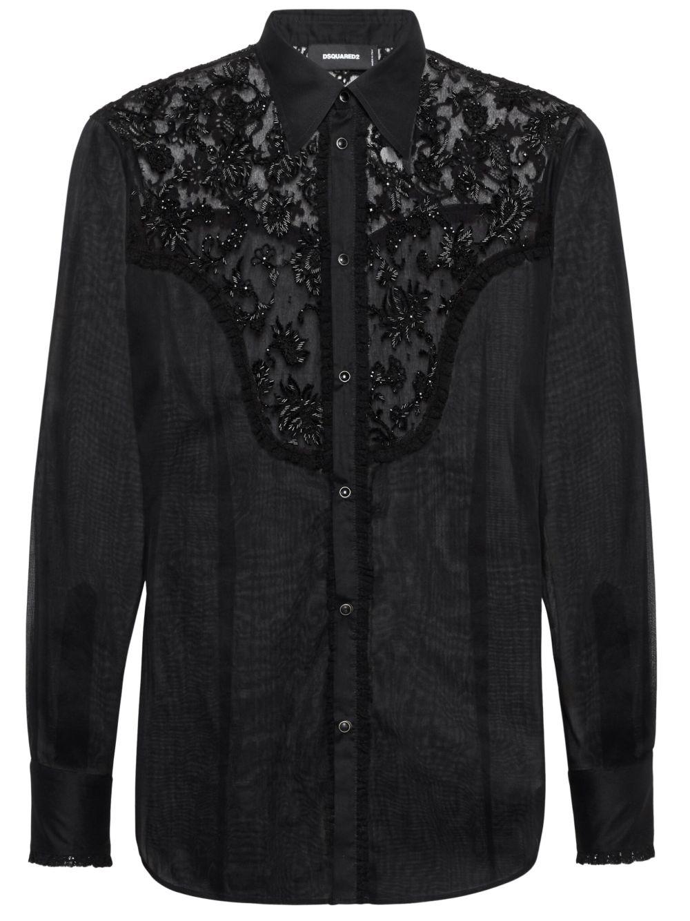 DSQUARED2 lace-panelled shirt | Black | Polyester/Cotton/Polyamide | Shirts | Clothing | Men