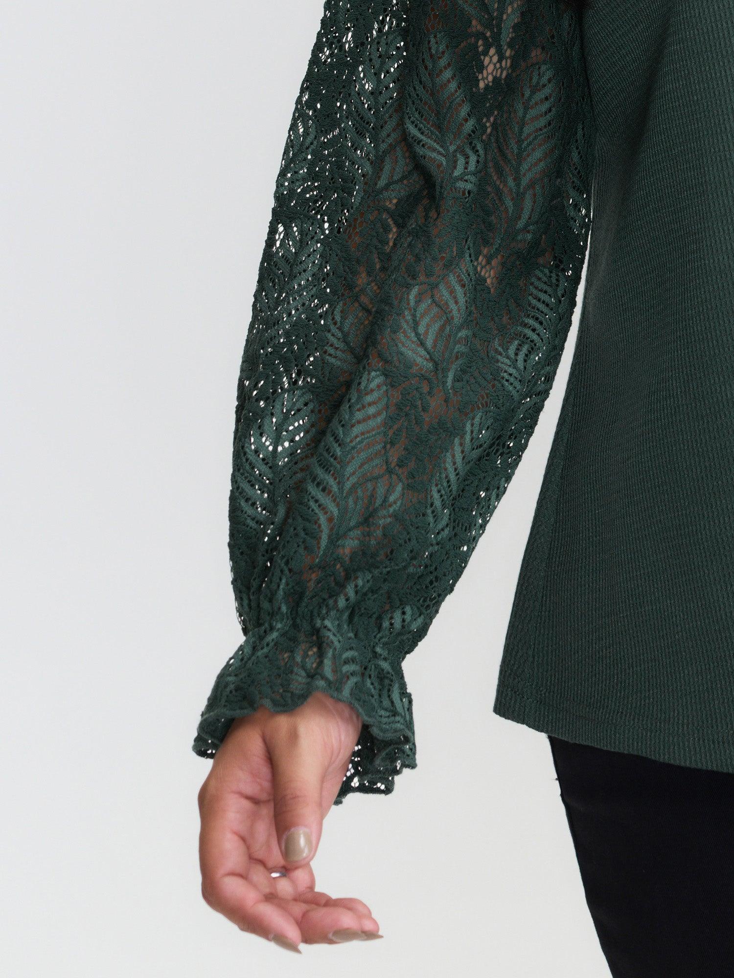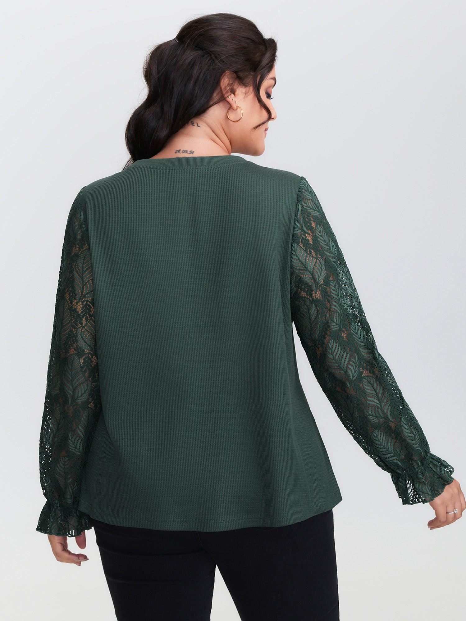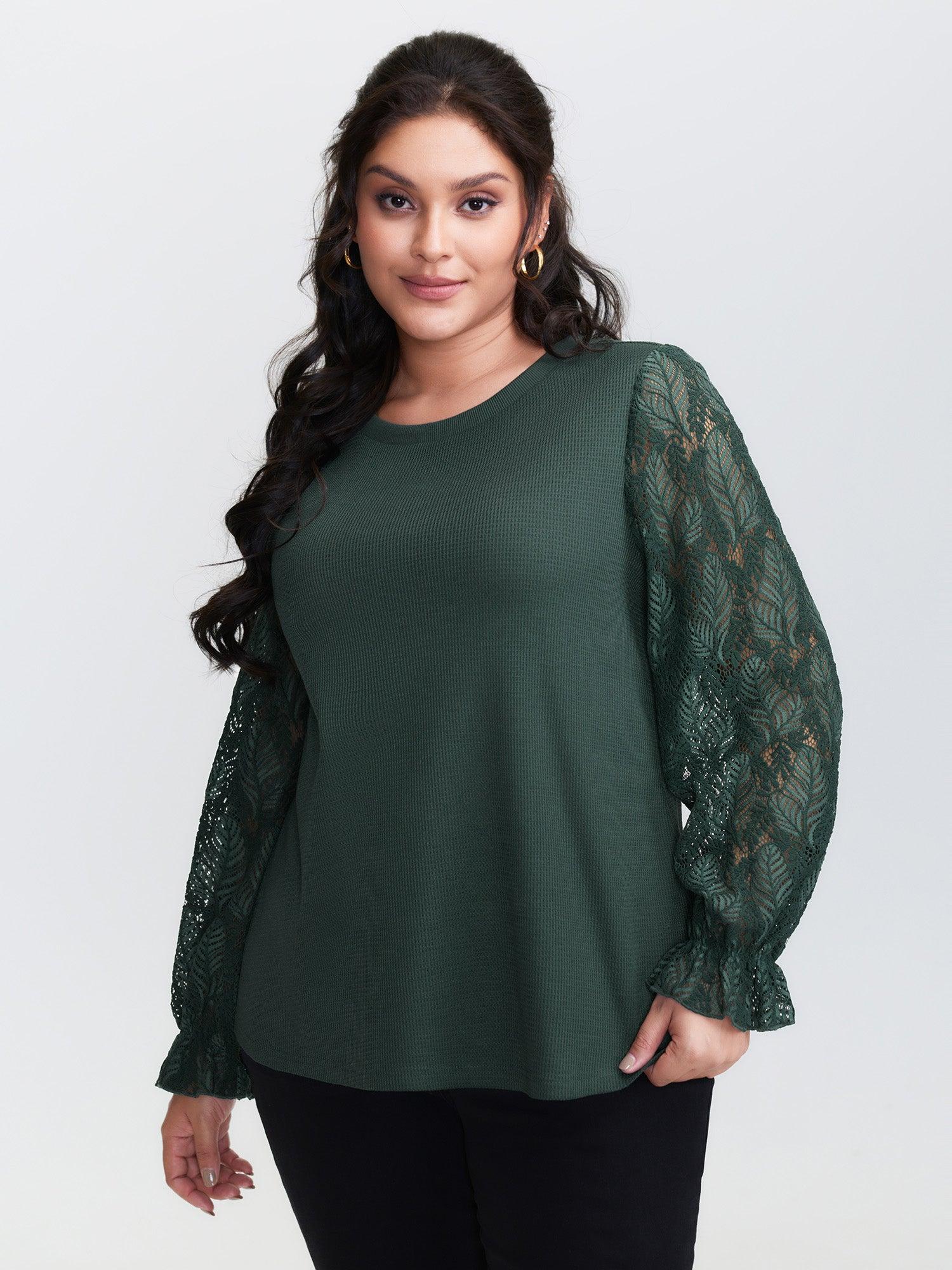 Shop Lace Shirred Cuff Sleeve Sweatshirt now and redefine your style with confidence at BloomChic. Tailored for mid and plus-size women. This trendy Tops Women, sizes 10-30. Color:Dark Slate Gray;Style:Timeless;Neckline:Round Neck;Sleeve Type:Lantern Sleeve;Prints:Synthetic texture;Details:Gathered, See through, Patchwork, Ruffles;Pocket:No-pocket;Belt:No-belt;Closure Type:Non