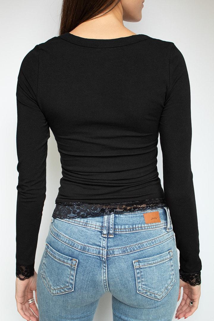 Lace Sleeve Top - Black