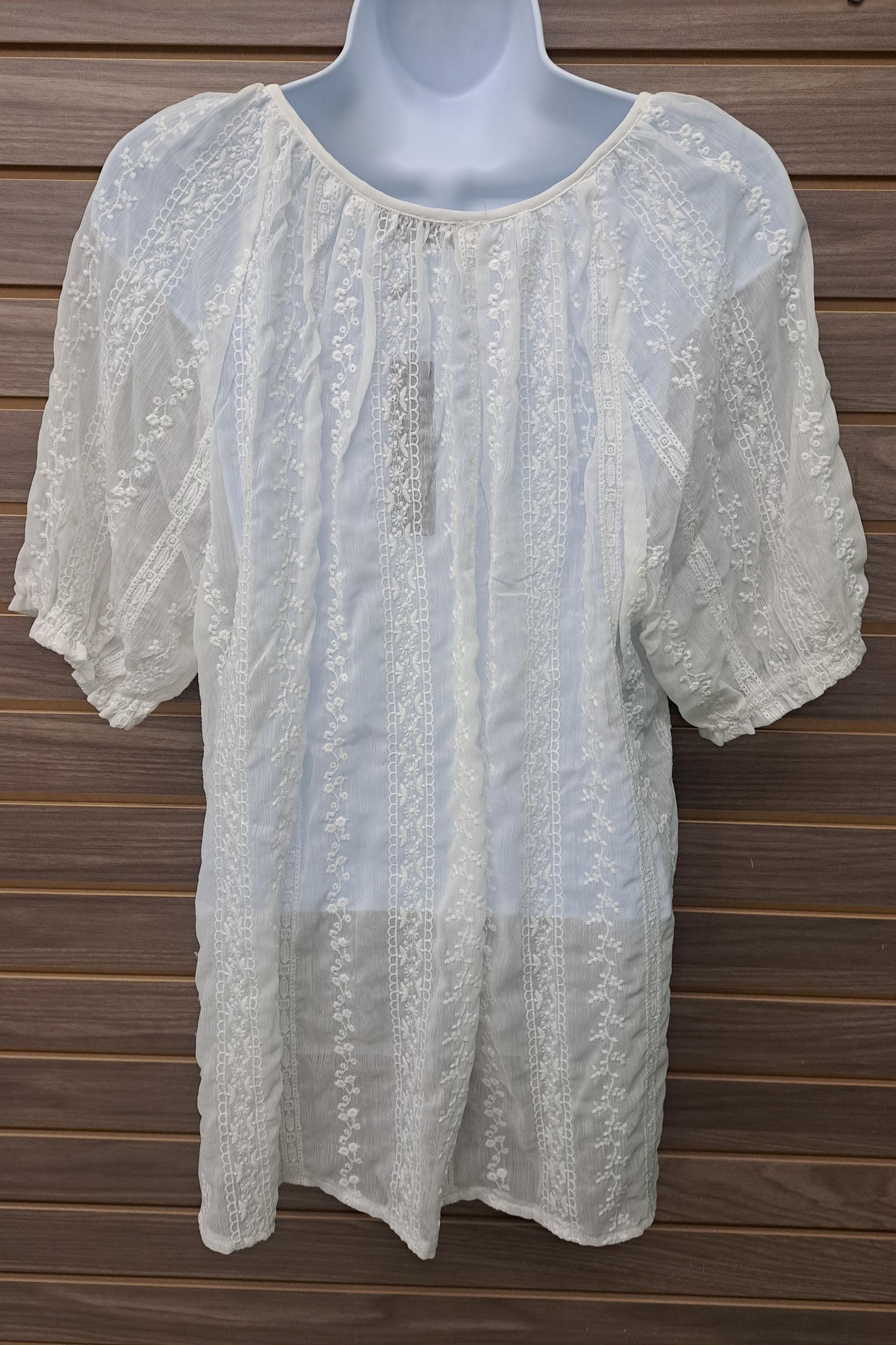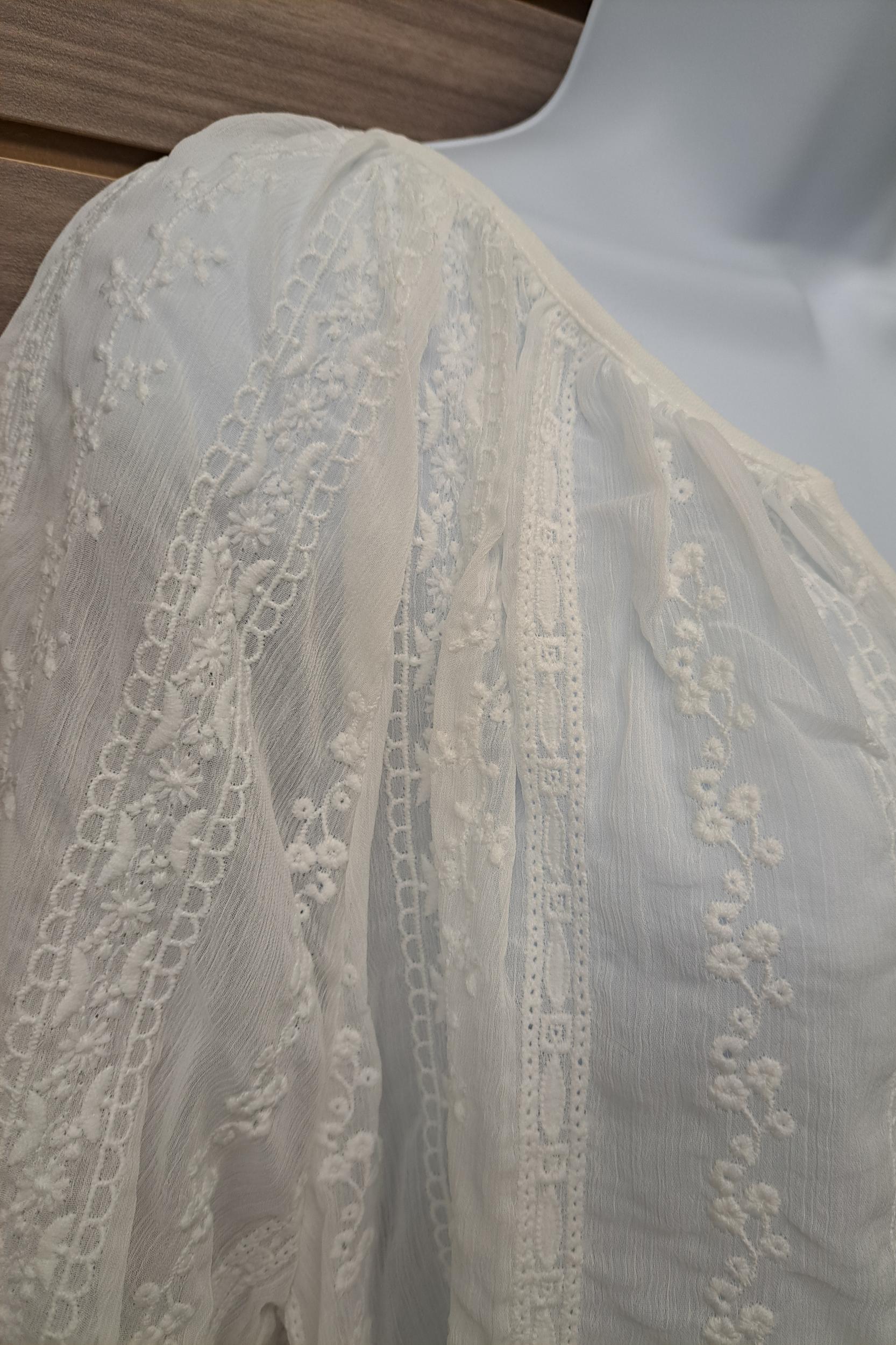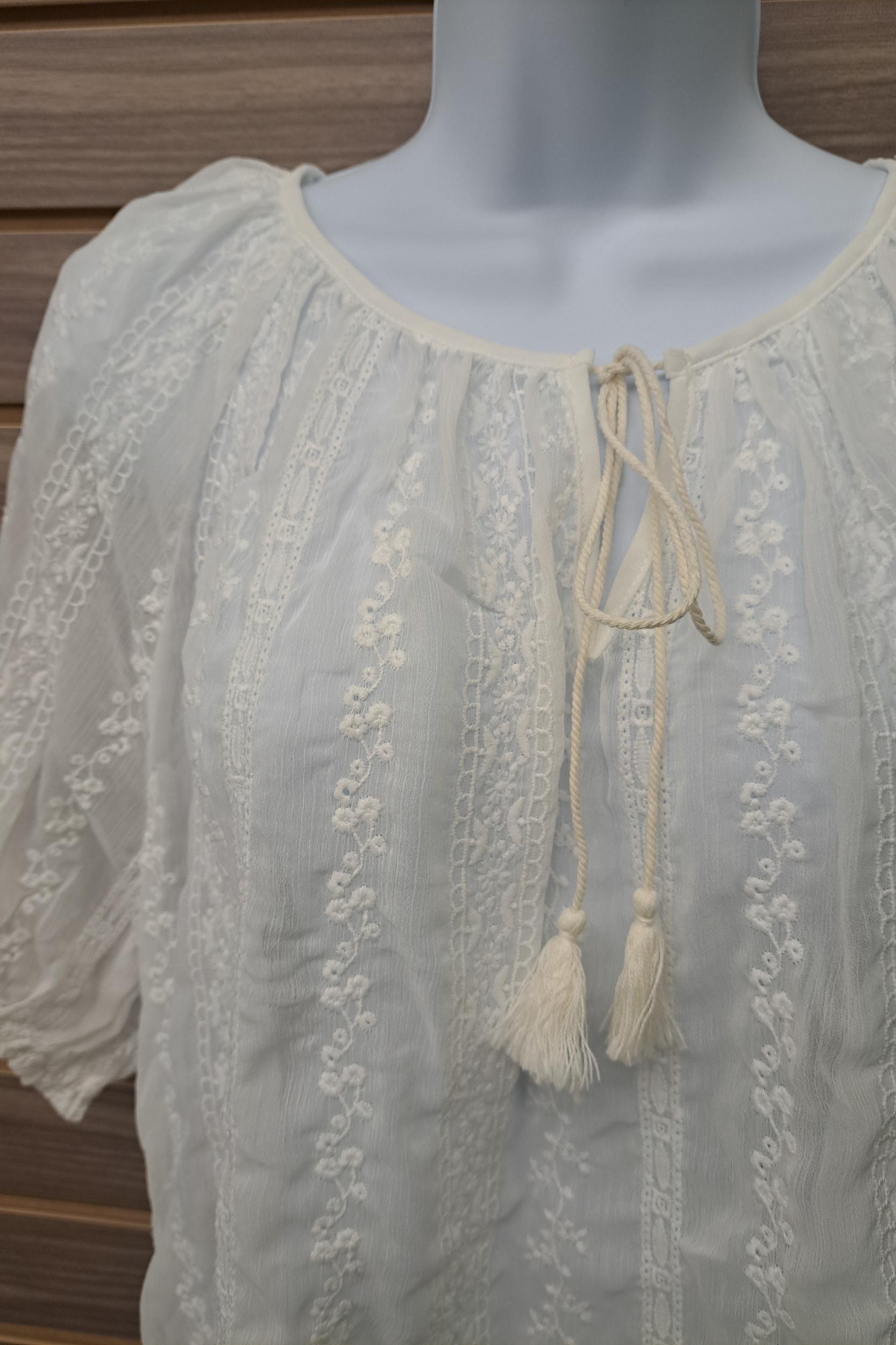 This stunning top is crafted from 100% polyester, providing lightweight comfort and a soft, silky feel. With a feminine lace design at the front, the top is finished with a sheer black tie at the neck, perfect for elevating any formal ensemble.