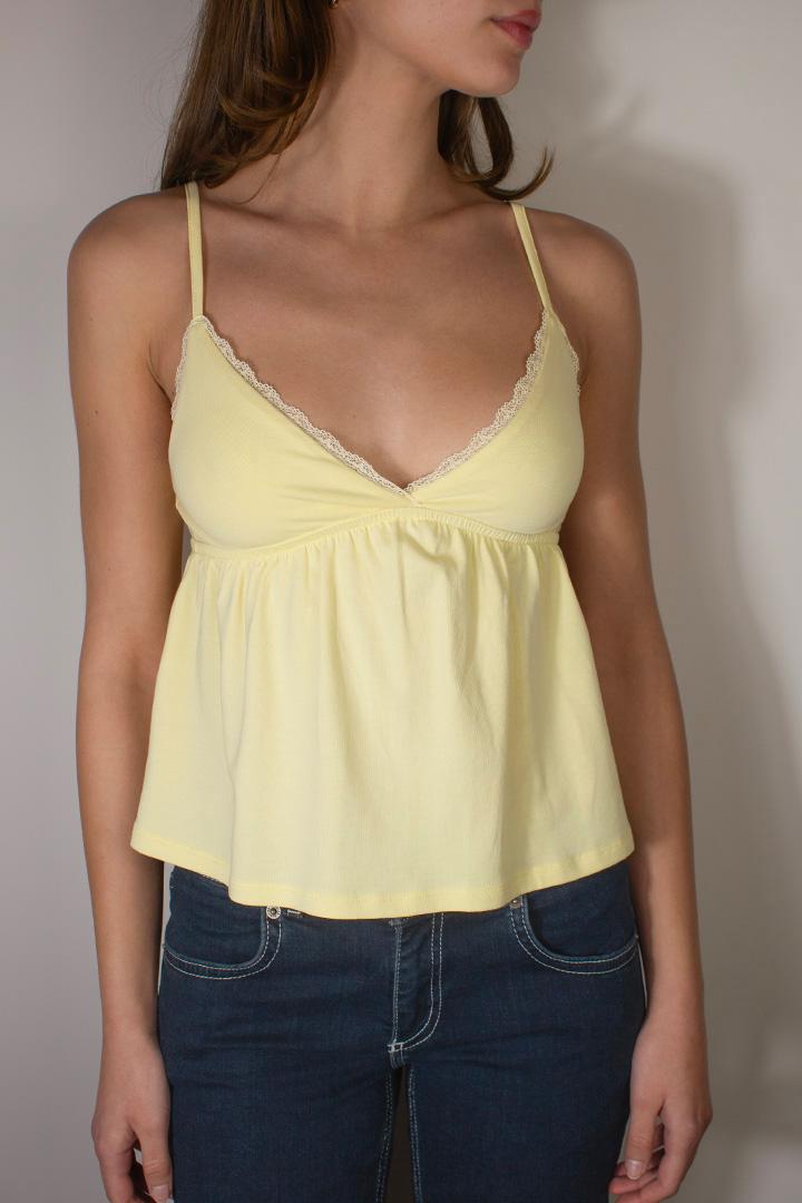 Lace top, v neckline, adjustable shoulder straps, sleeveless, regular length, slim fit.