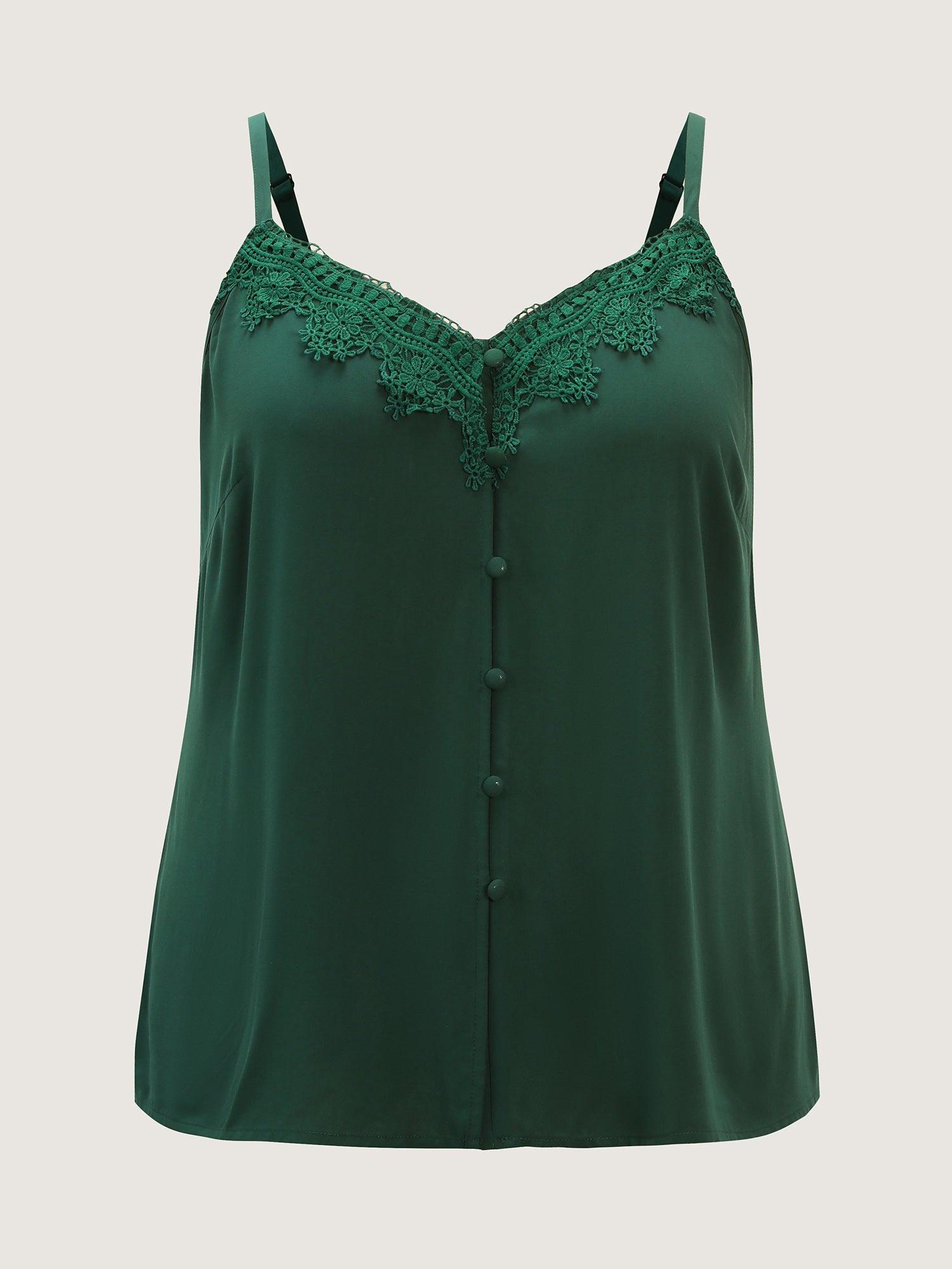 Shop Lace Trim Adjustable Button Detail Tank Top now and redefine your style with confidence at BloomChic. Tailored for mid and plus-size women. This trendy Tops Women, sizes 10-30. Color:Cyan;Style:Timeless;Prints:Synthetic texture;Neckline:V-neck;Sleeve Type:Sleeveless;Details:Texture, Petal edge, Button;Pocket:No-pocket