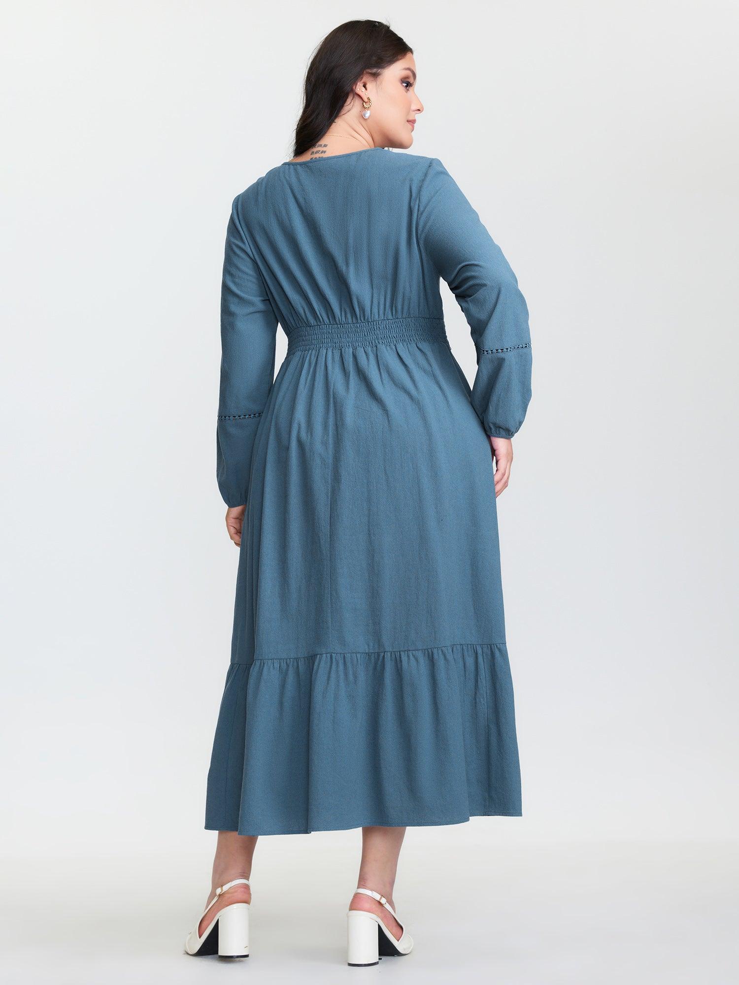 Shop Lace Trim Shirred Pocket Maxi Dress now and redefine your style with confidence at BloomChic. Tailored for mid and plus-size women. This trendy Dress, sizes 10-30. You can never go wrong with BloomChic Dresses. Color:Stone;Style:Romantic;Neckline:V-neck;Sleeve Type:Puff Sleeve;Prints:Synthetic texture;Details:Texture, Gathered, See through, Patchwork, Cut-Out, Button, Shirred;Pocket:Side seam pocket;Belt:No-belt;Closure Type:Non
