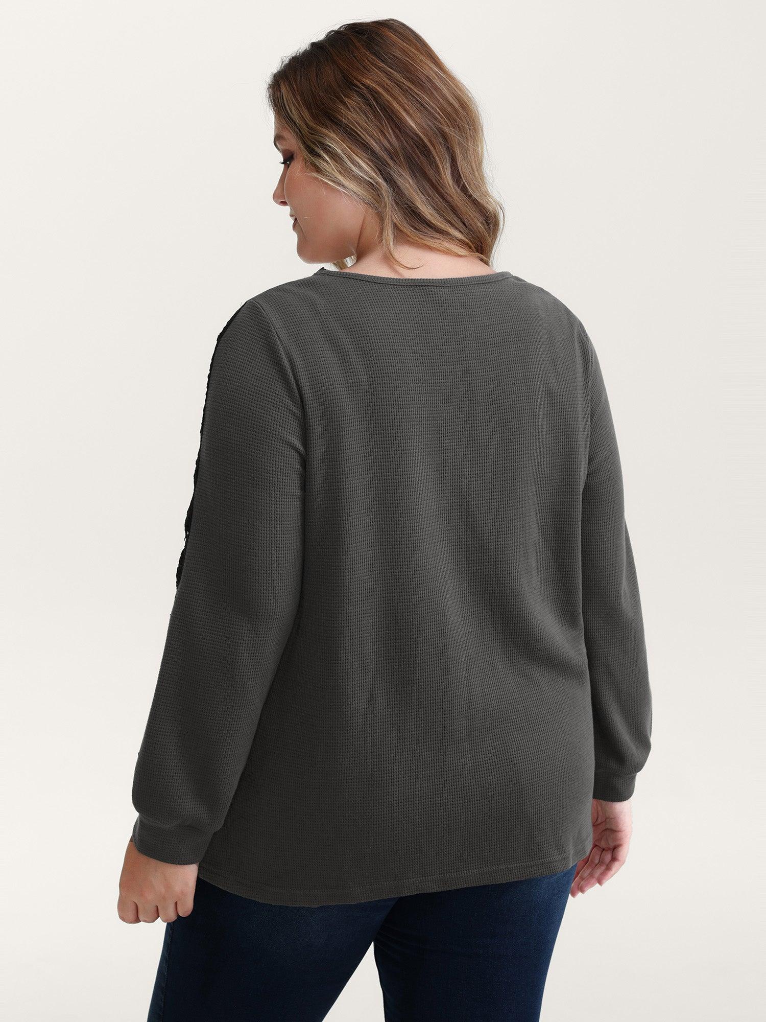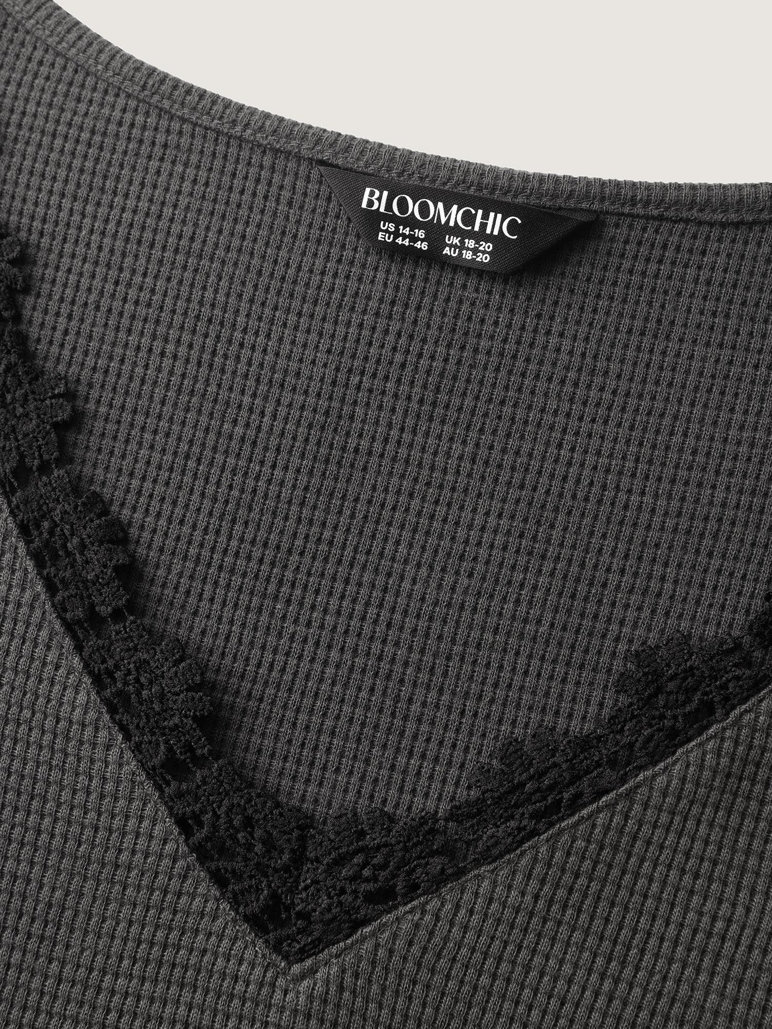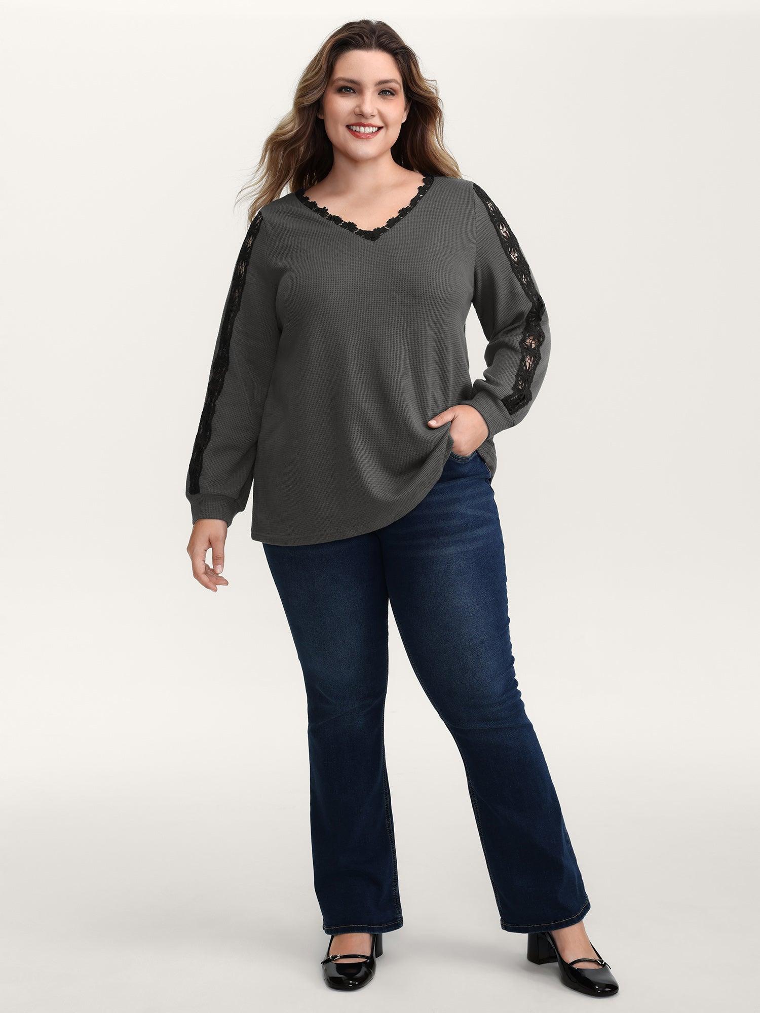 Shop Lace Trim Textured V-Neck T-Shirt at BloomChic. Plus Size Clothing & Plus Size T-shirts. BloomChic is a digital-first fashion and lifestyle destination for modern women sizes 10-30.