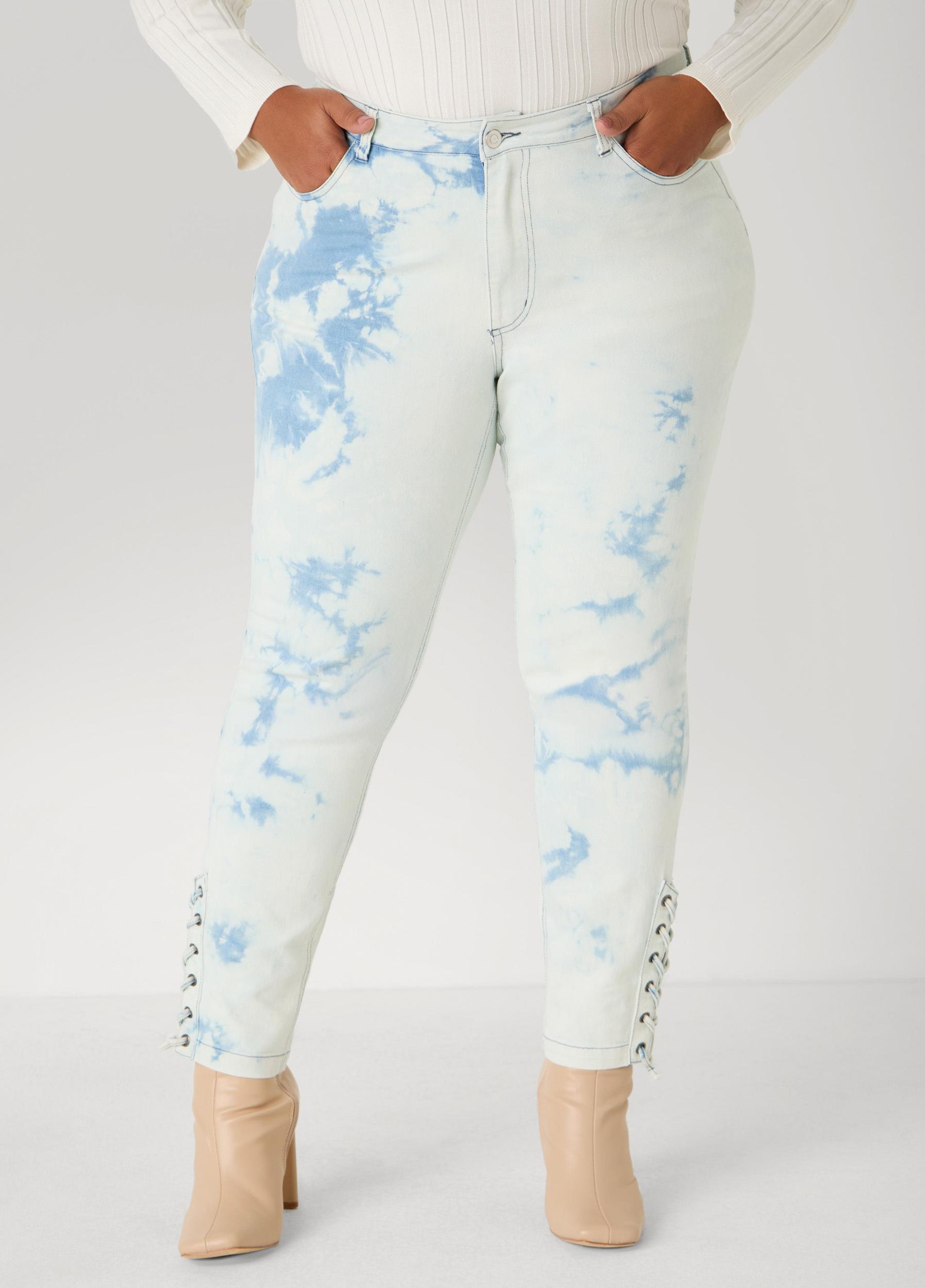 Lace Up Acid Wash Skinny Jeans