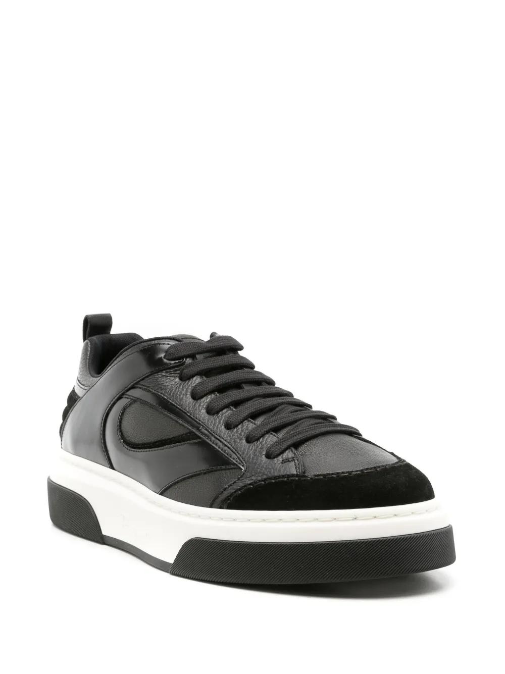 Shop Ferragamo Salvatore Round In Black from 800+ stores, starting at $358. Ferragamo Mens Sneakers. SKU: 021276 762559. Color: Black. Ferragamo Round Toe Logo Embroided Sneaker. This sneaker features a rear suede panel, a logo patch and a round tip with a front lace closure. They have a flat rubber sole for both comfort and style, and are constructed from durable and comfortable veal leather. Material: 77% calfskin 23% leather. Made in Italy. Please visit the brand website for sizing information.