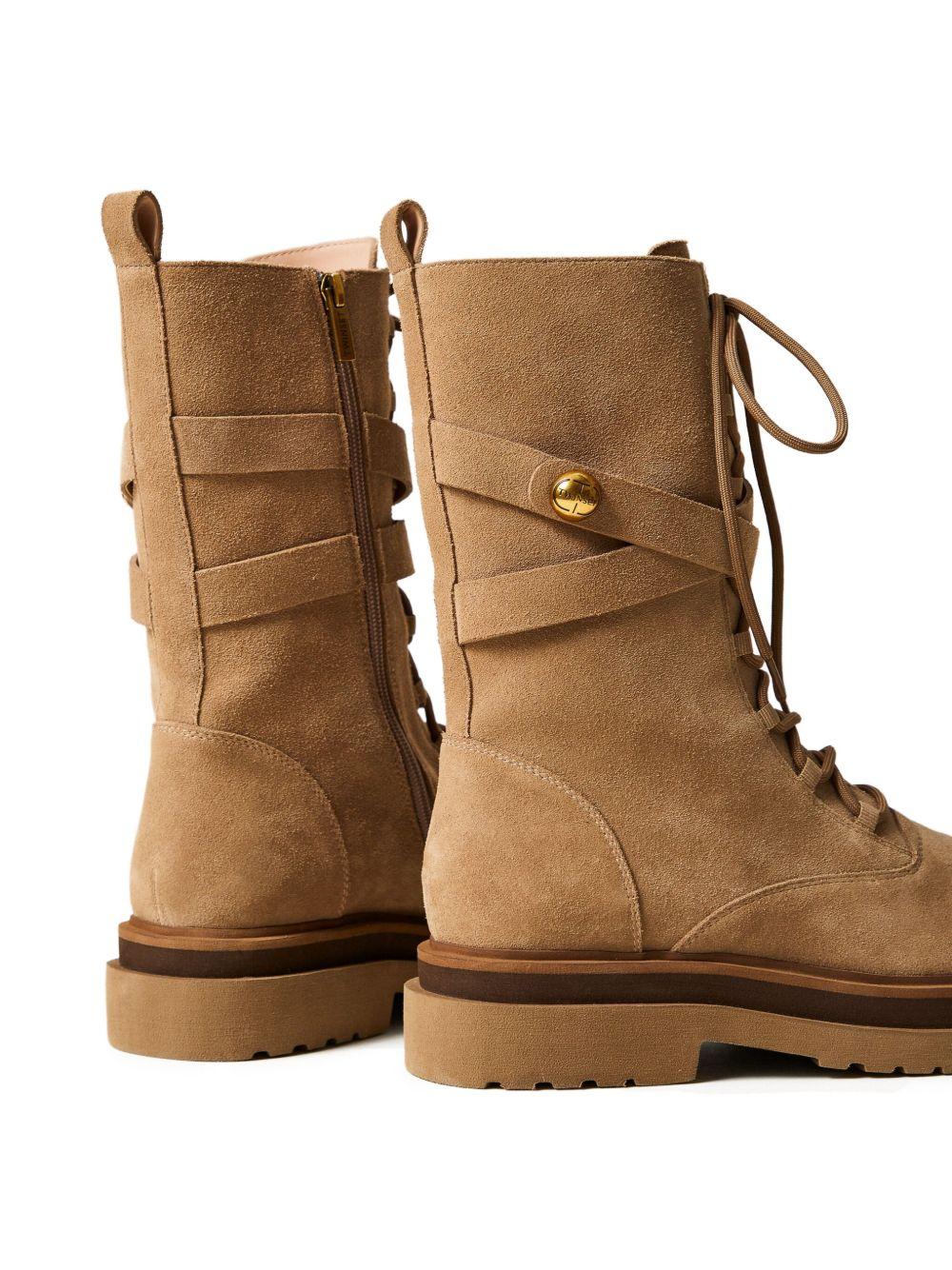 TWINSET lace-up strap boots | Neutrals | Calf Suede/Fabric/Rubber | Ankle Boots | Boots | Shoes | Women