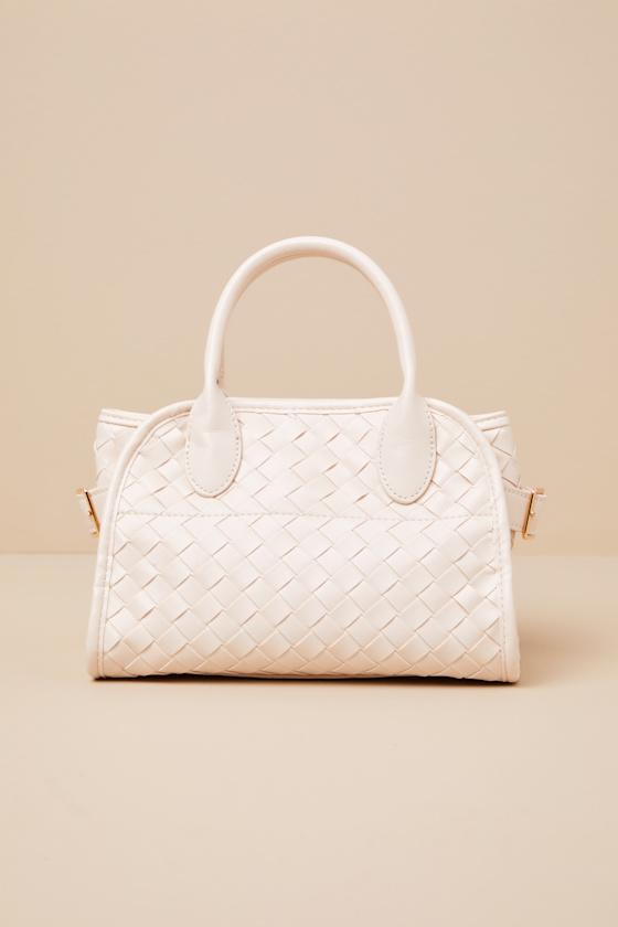 Ready for anything and cuter than ever, this lil' woven handbag gets through the day in style, with a flat bottom design crafted from smooth vegan leather. Sturdy twin tote handles sit atop a spacious interior that secures with a magnetic strap closure, complete with a zippered sidewall pocket and plenty of room for your daily essentials. A cinching buckle strap accents the sides, while a detachable crossbody strap completes the look.
