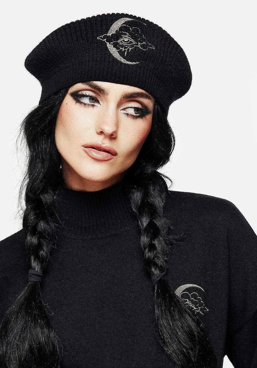 I’ll cry if I want to - Black moon & cloud embroidered knit beanie - Rounded beanie shape with a dainty rim - Soft black knit fabrication - Grey moon & cloud embroidery on front - Don’t be sad... Buy a beanie 50% viscose, 30% polyester, 20% nylon