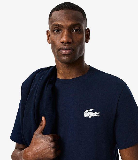 From Lacoste, this t-shirt features: Crew neckline Short sleeves Contrast crocodile graphic and “Lacoste” branding on the left chest Pullover construction Relaxed fit Comfortable cotton jersey Machine wash/tumble dry Imported.