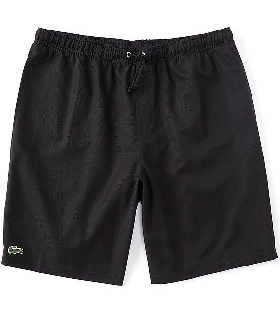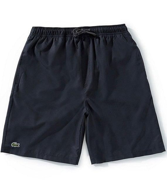 From Lacoste, these shorts feature: elasticized waistband with drawstring embroidered green crocodile branding at bottom fully lined approx. 8.5" inseam cotton/polyester machine wash/tumble dry Imported.