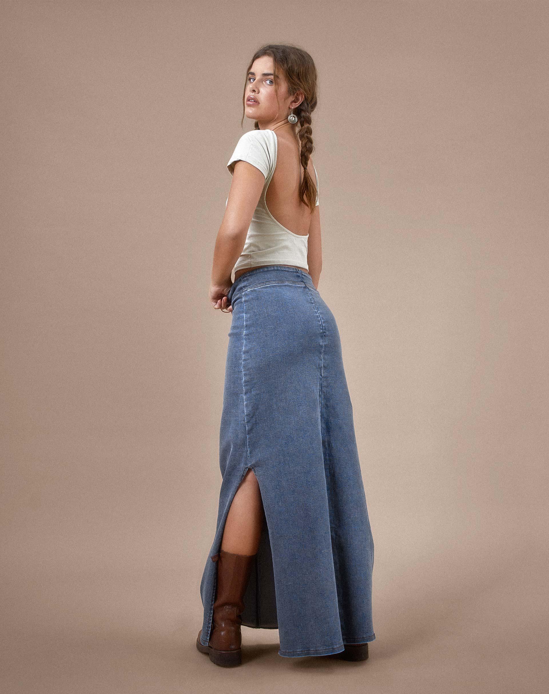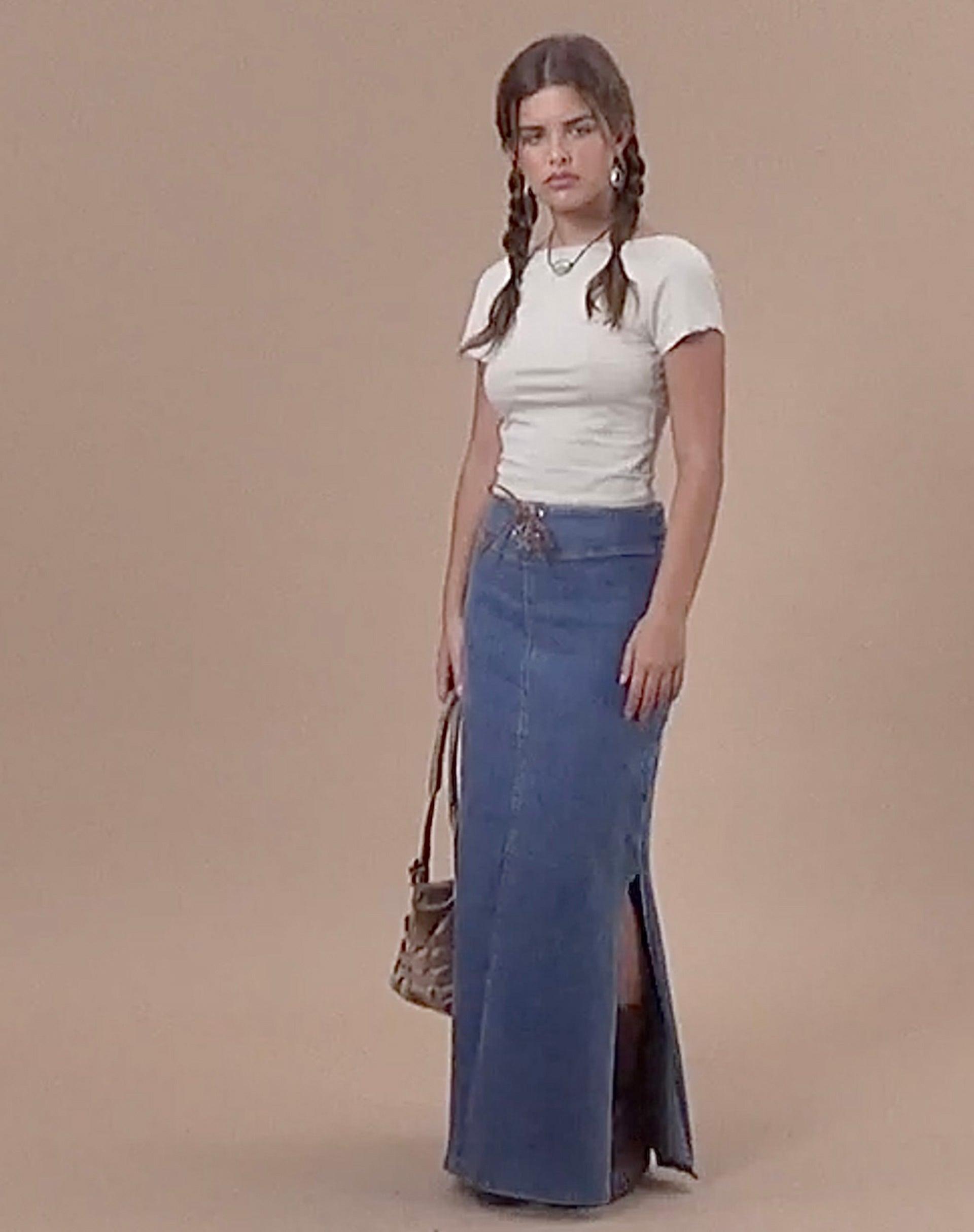 Get festival ready with our Lafille skirt. In a denim stretch fabric, it features a loose, maxi fit with a low rise waistline and eyelet cross tie detailing. Complete the co-ord with Kaiha corset. MODEL WEARS:SMALL - MODEL HEIGHT:5'6 - FABRIC CONTENT: 72% COTTON 26% POLYESTER 2% ELASTANE