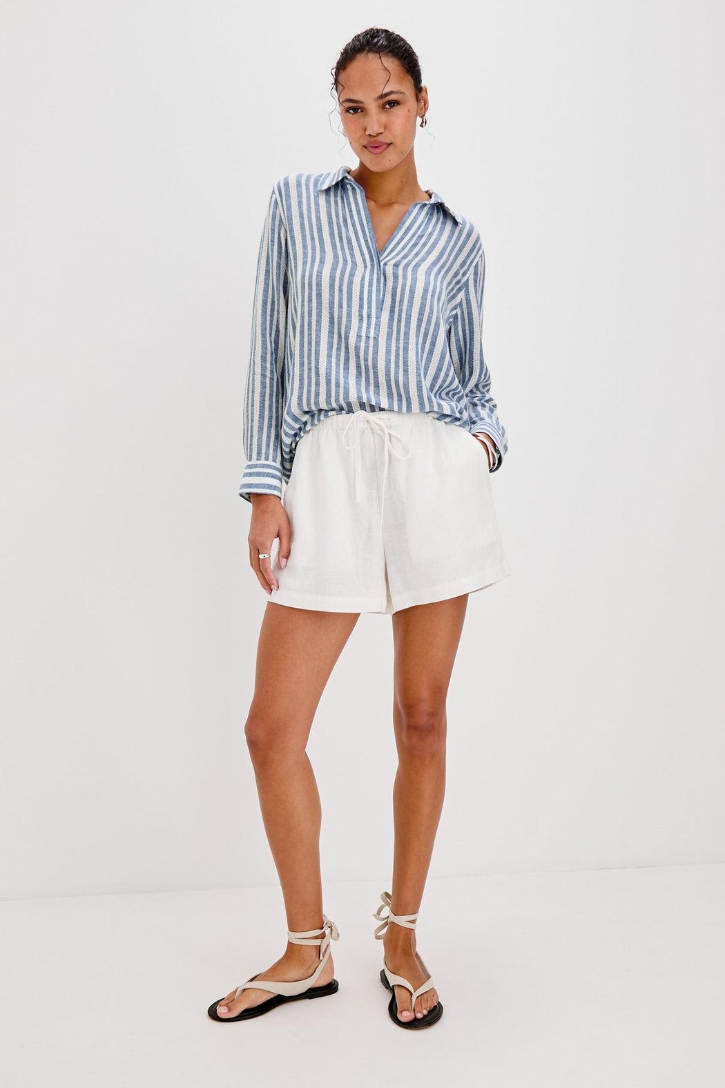 The Lagoon is an easygoing button-up crafted from an eco-friendly, luxe linen blend. Classic shirting details meet a subtle side-slit and relaxed fit for all-day comfort.