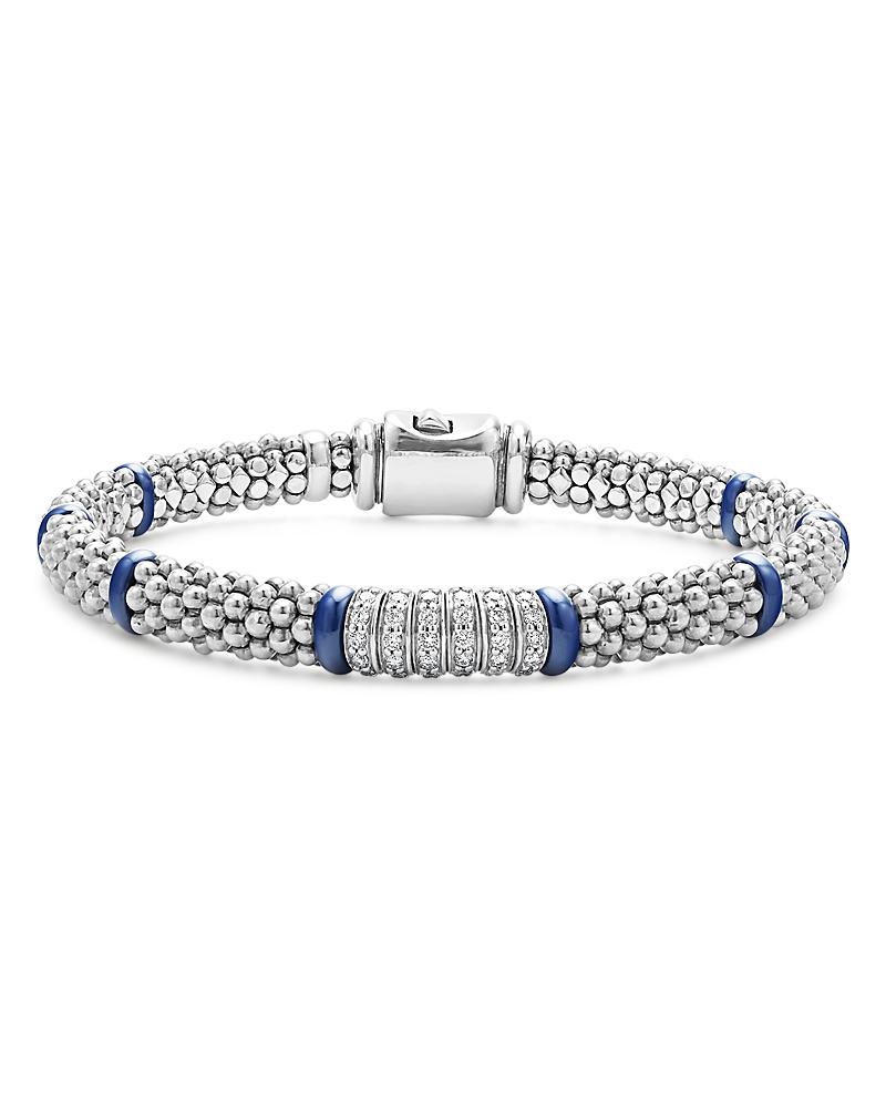Lagos Six Station Diamond Blue Caviar Bracelet in Sterling Silver