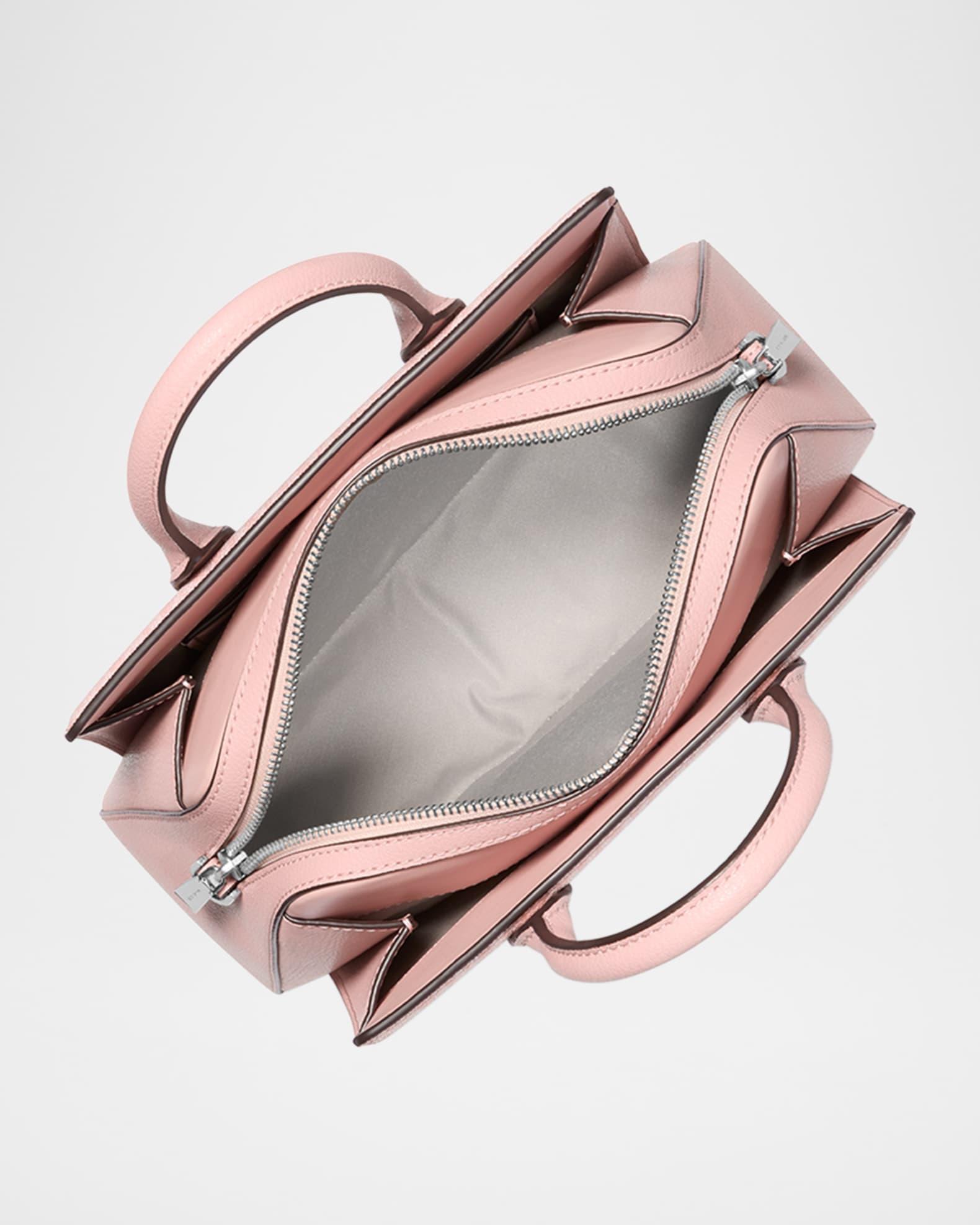 MICHAEL Michael Kors "Laila" coated signature logo canvas satchel bag with logo charm Rolled top handles Detachable, adjustable crossbody strap Can be worn as a top handle or crossbody bag Center zip compartment Divided interior compartment Lining: Polyester Feet protect bottom of bag Approx. 7.3"H x 10"W x 4.8"D PVC/polyester/polyurethane/leather Wipe clean Imported