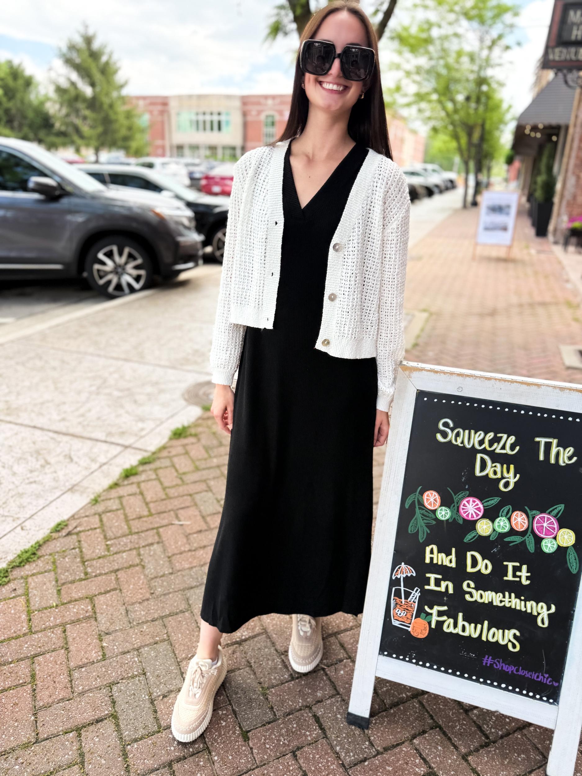 This cardigan takes "chunky" in a new direction with its light, airy knit and versatile white color. Perfect for layering and adding a touch of playfulness to any outfit!