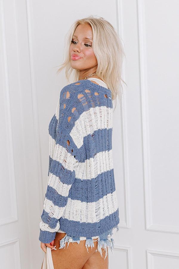 - This trendy knit top is perfect for a breezy stroll down the boardwalk. With a unique loose knit design and striped pattern, it is perfect for a laid-back vibe. Whether you are wandering along the coast or simply relaxing on your patio, this top adds a stylish flair to your OOTD! - Unlined loose knit material with a striped pattern - A crew cut neckline - Long sleeves with ribbed cuffs - A relaxed silhouette that ends in a straight hemline