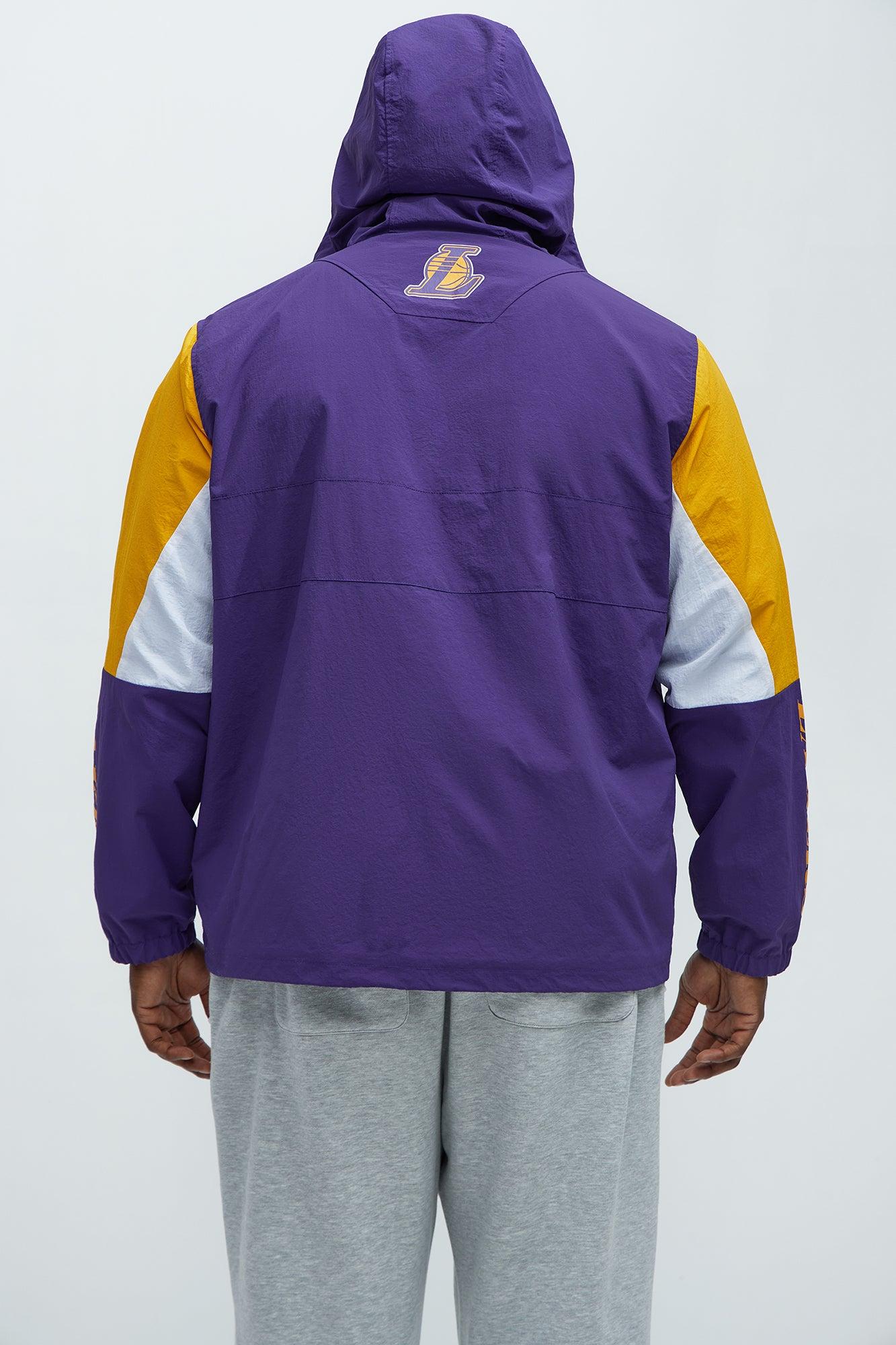 Available In Purple. Quarter Zip Hooded With Drawstring Details Front LA Lakers Chest Patch Colorblock Back Neck LA Lakers Patch LA Lakers Sleeve Graphics Elastic Cuffs Cinchable Hem Long Sleeves Shell: 100% Nylon Lining: 100% Polyester Disclaimer: Embroidery Placement Will Vary. Imported
