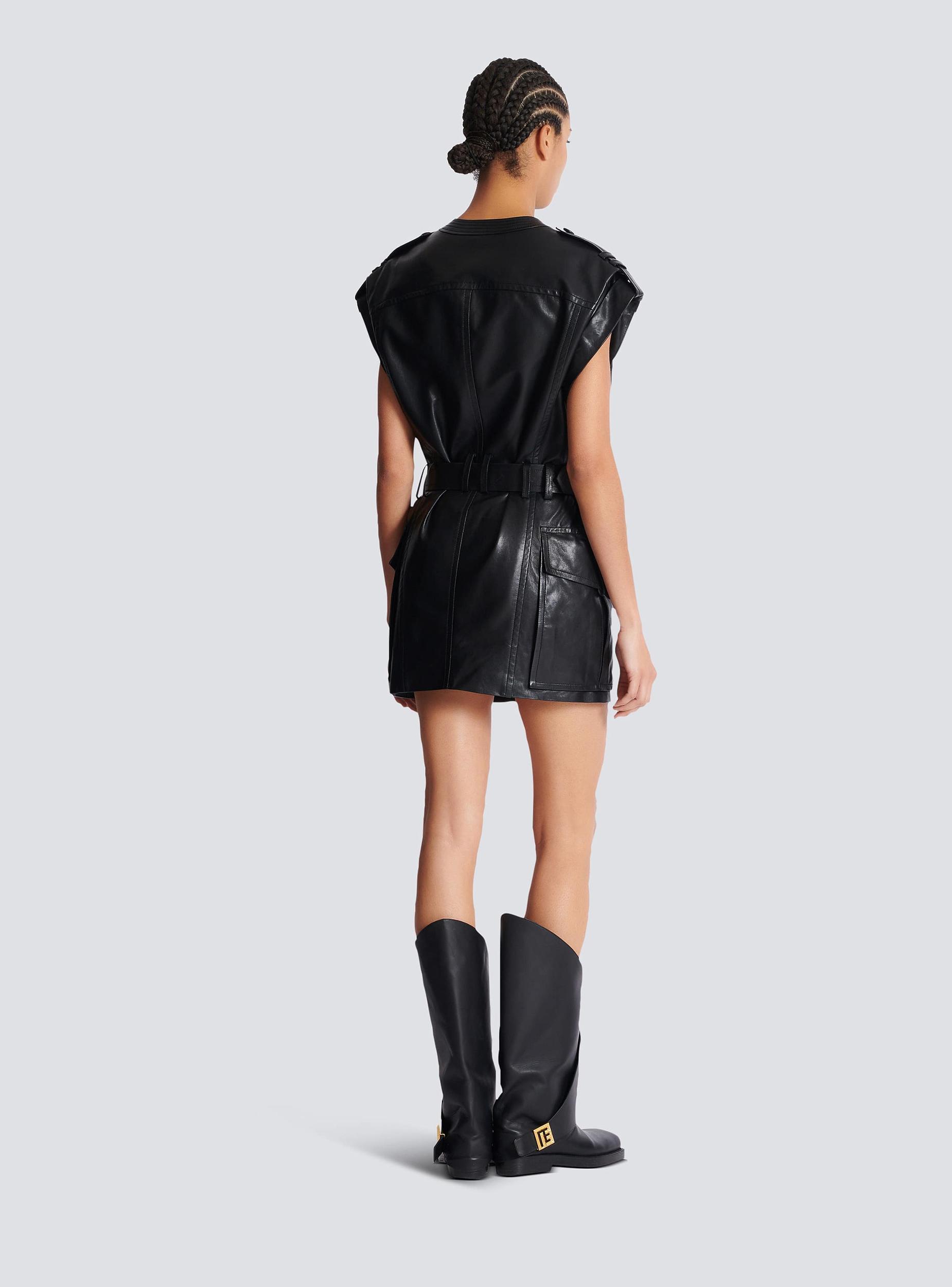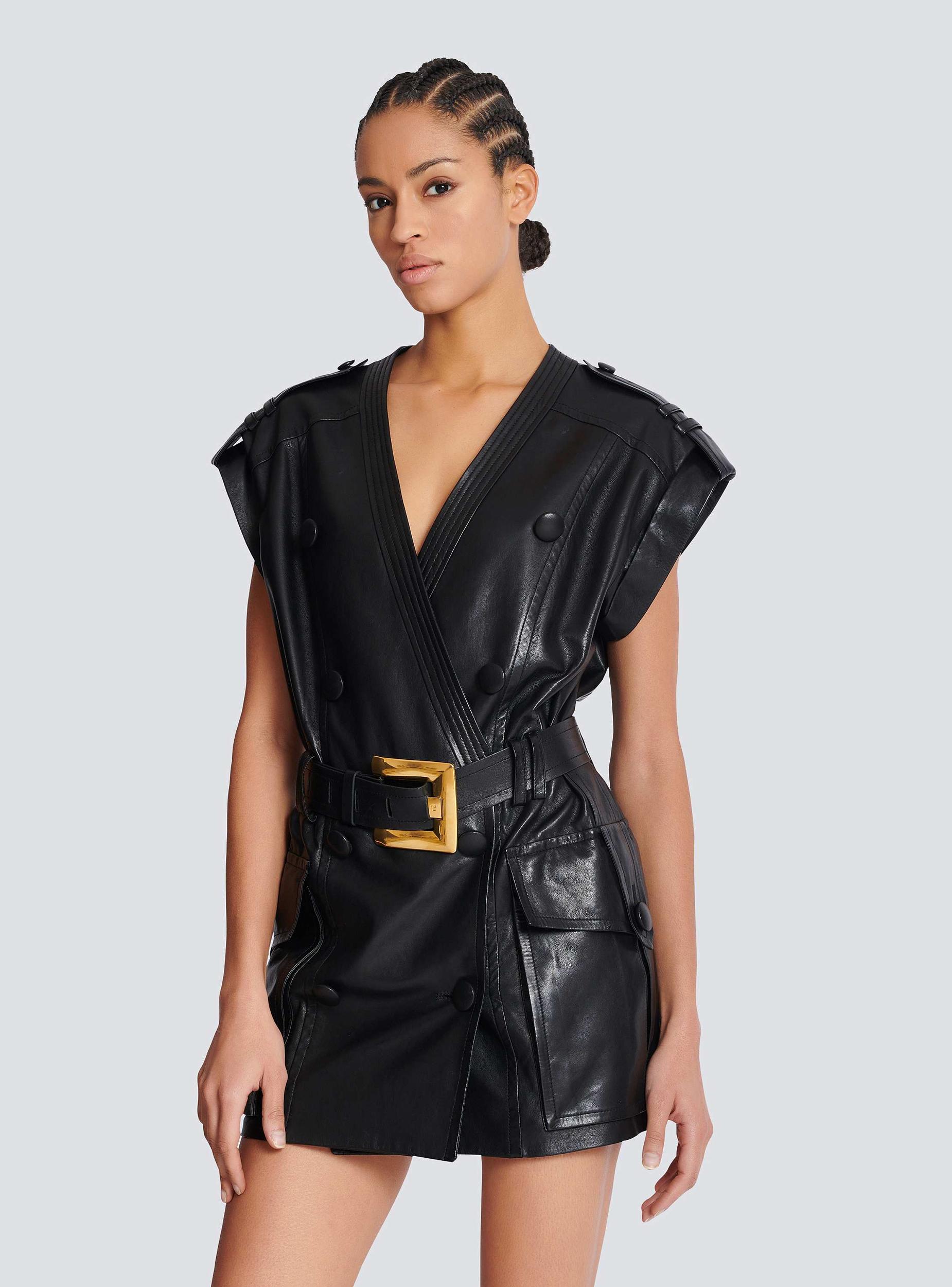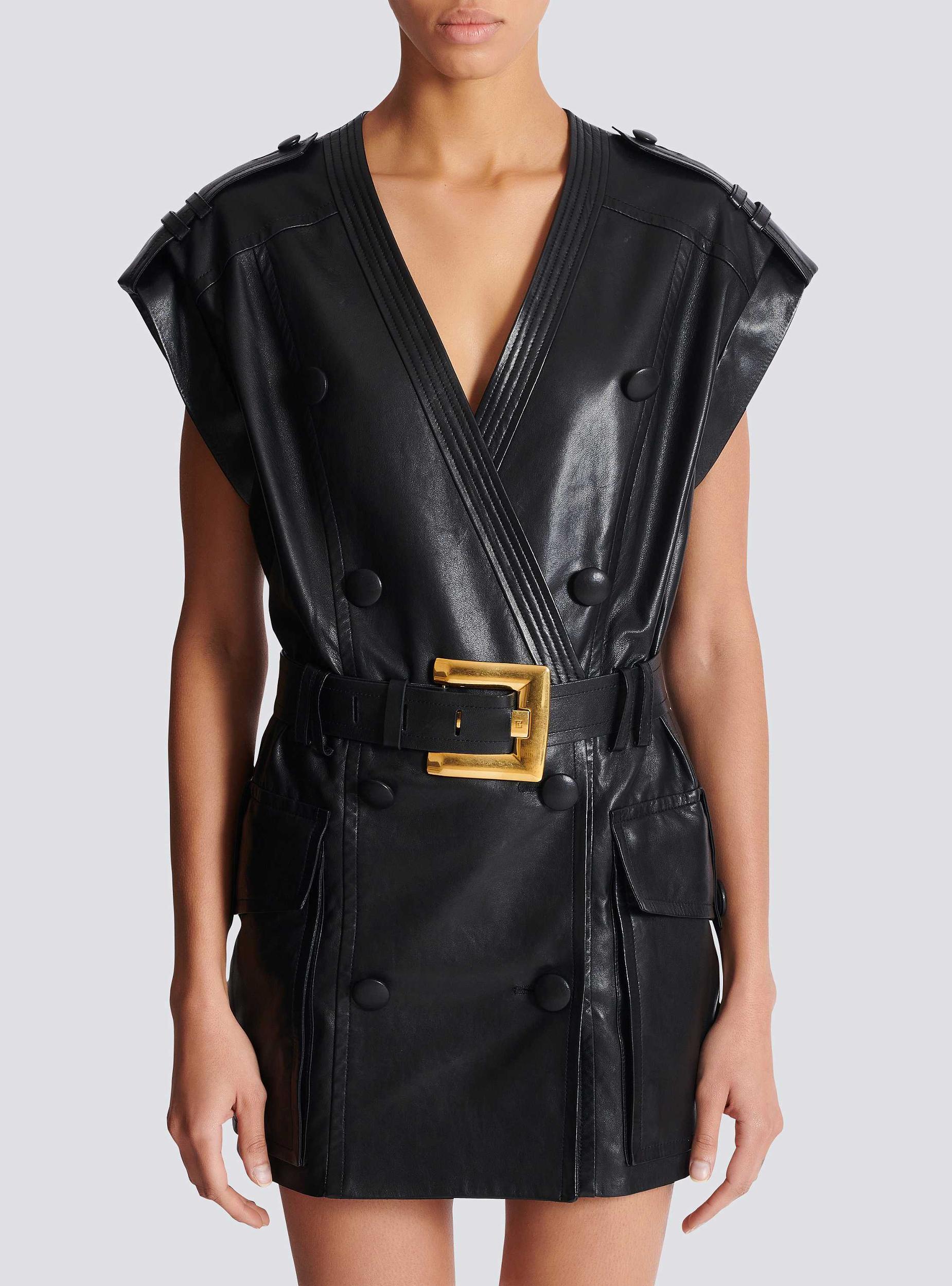 Lambskin leather belted dress