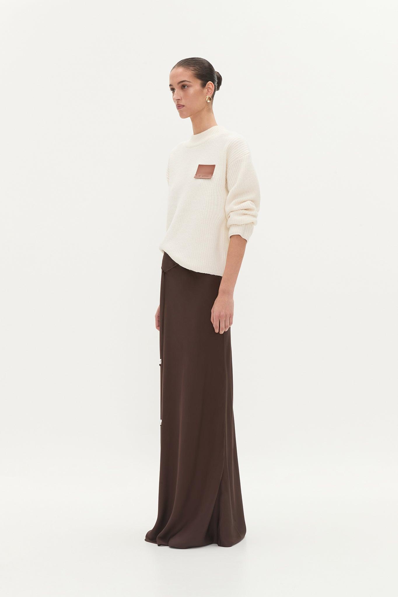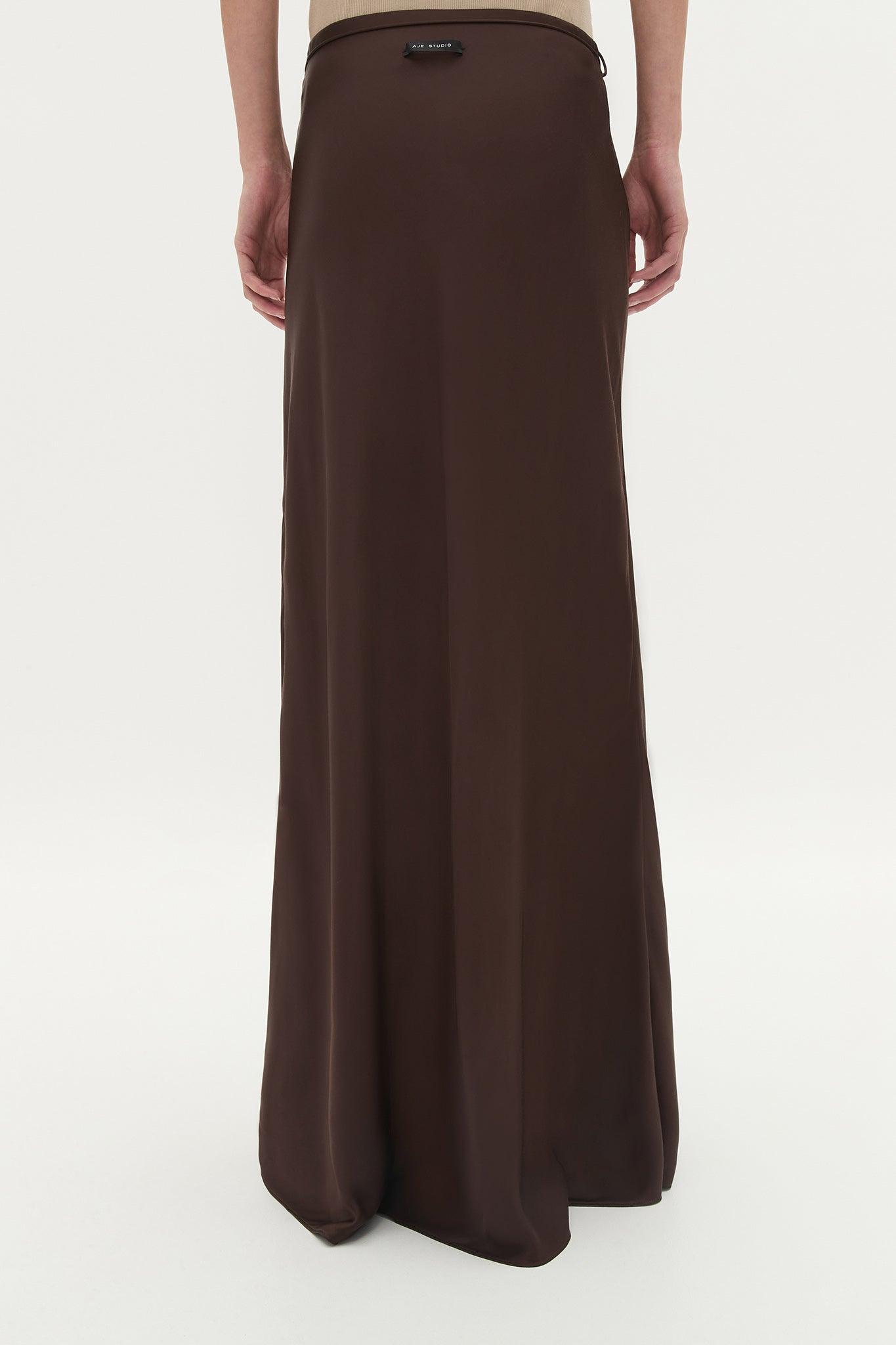 Amari Maxi Skirt - High Waisted Bias Cut Skirt in Chocolate
