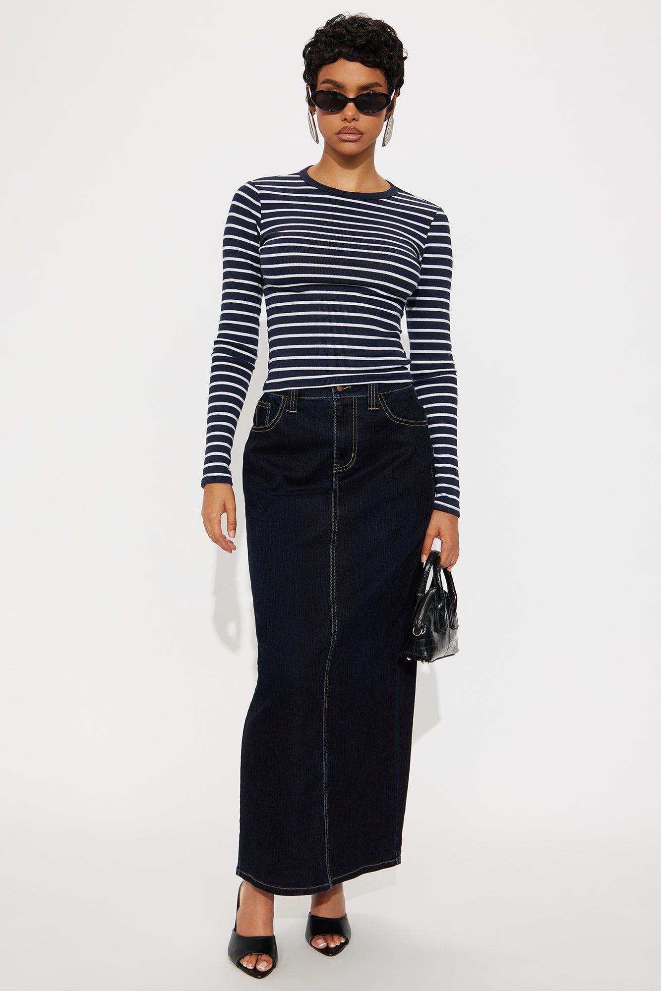 Lana Striped Crew Neck Long Sleeve Top - Navy/combo Female