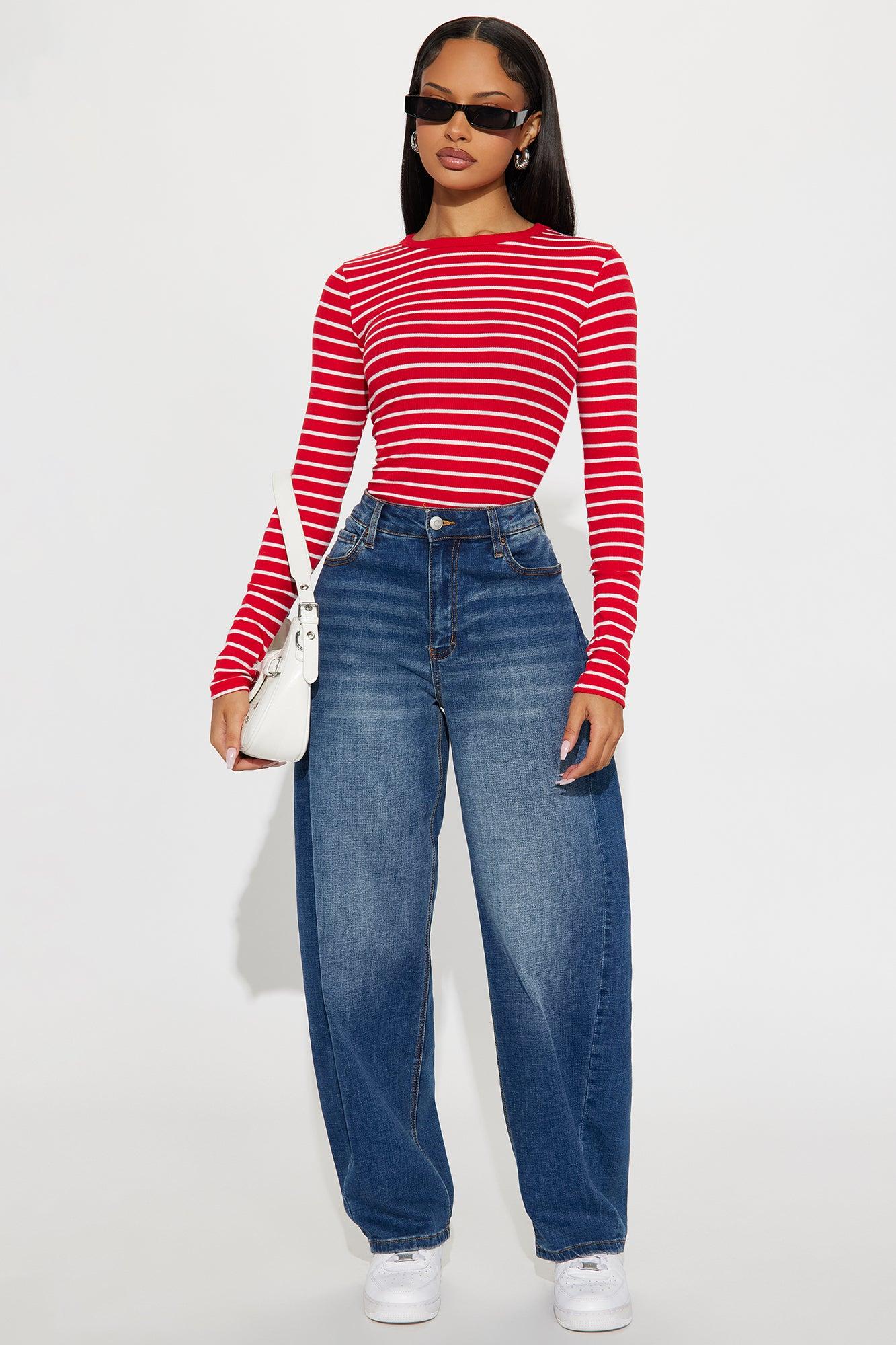 Lana Striped Crew Neck Long Sleeve Top - Red/combo