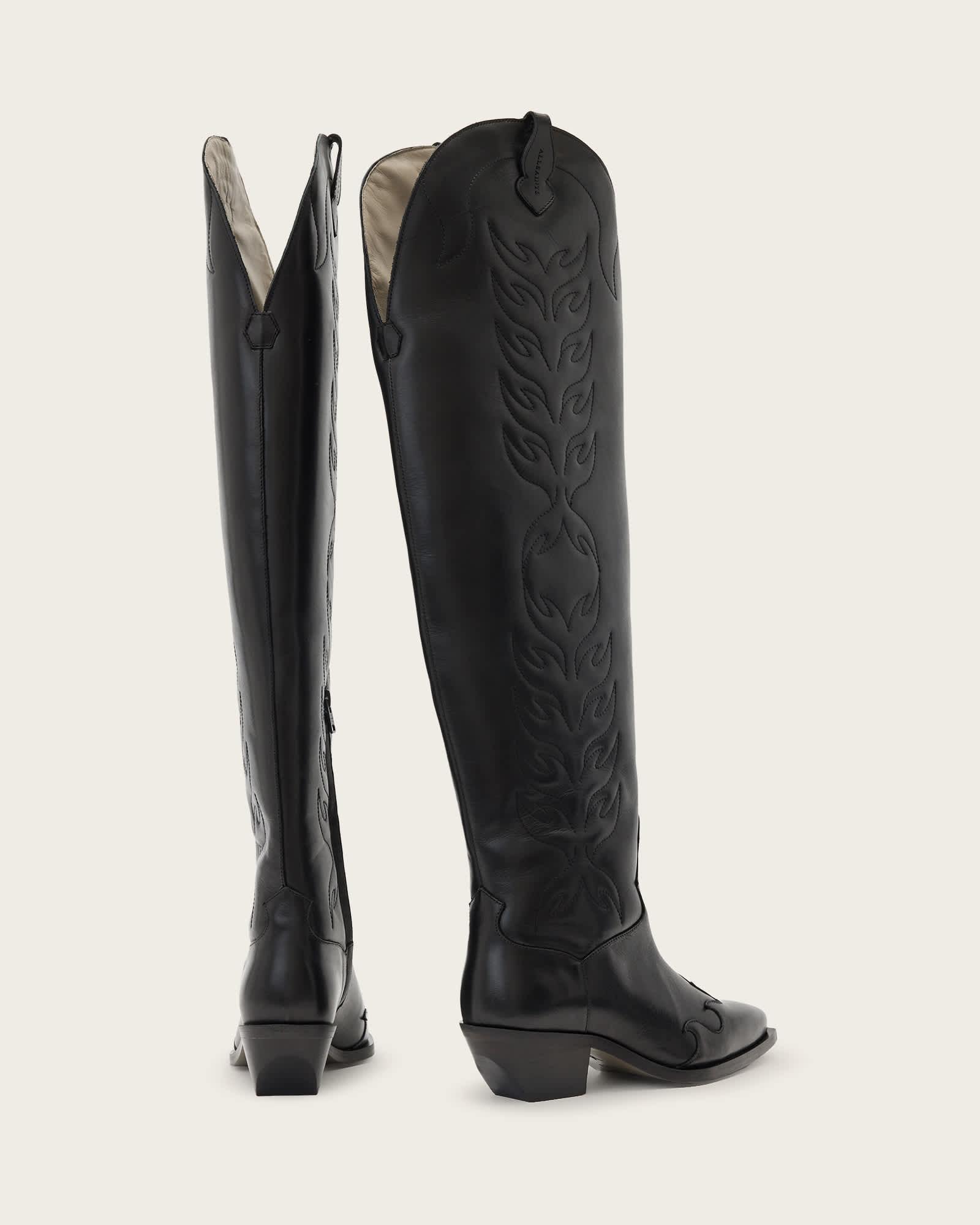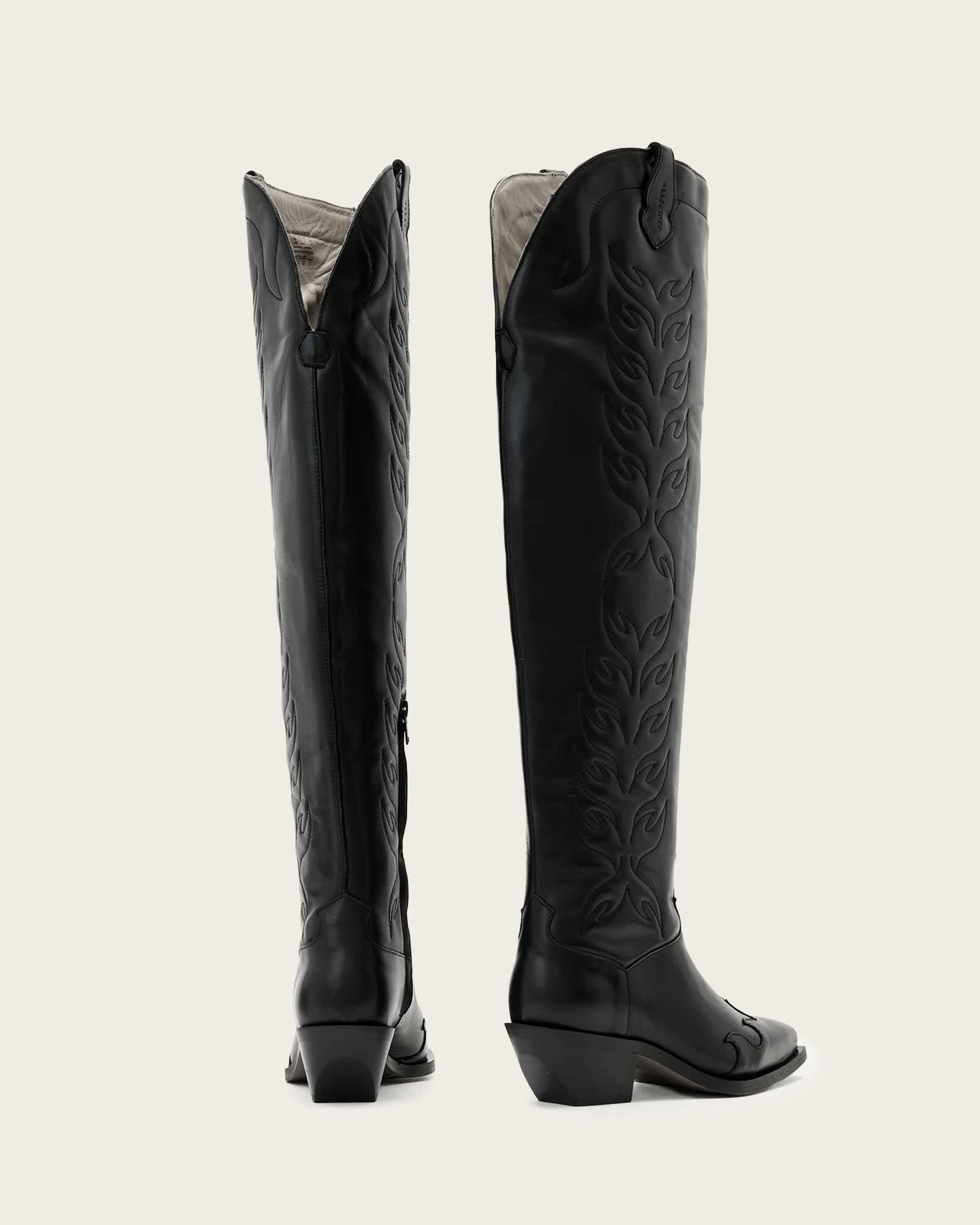 Landon Leather Knee High Boots Black | ALLSAINTS US