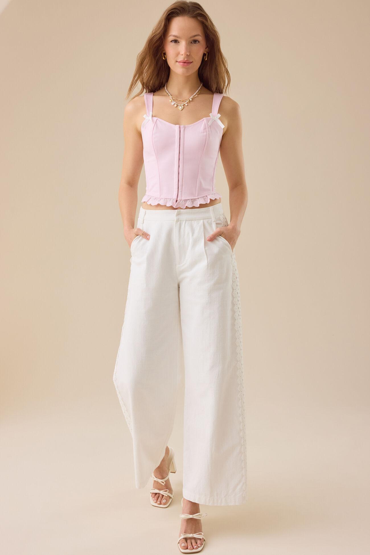 This hook and eye corset combines elegance with a touch of classic charm with its intricate lace details and charming bow accents. The classic hook and eye closure ensures a secure, adjustable fit, while the delicate lace adds a romantic, textured touch.