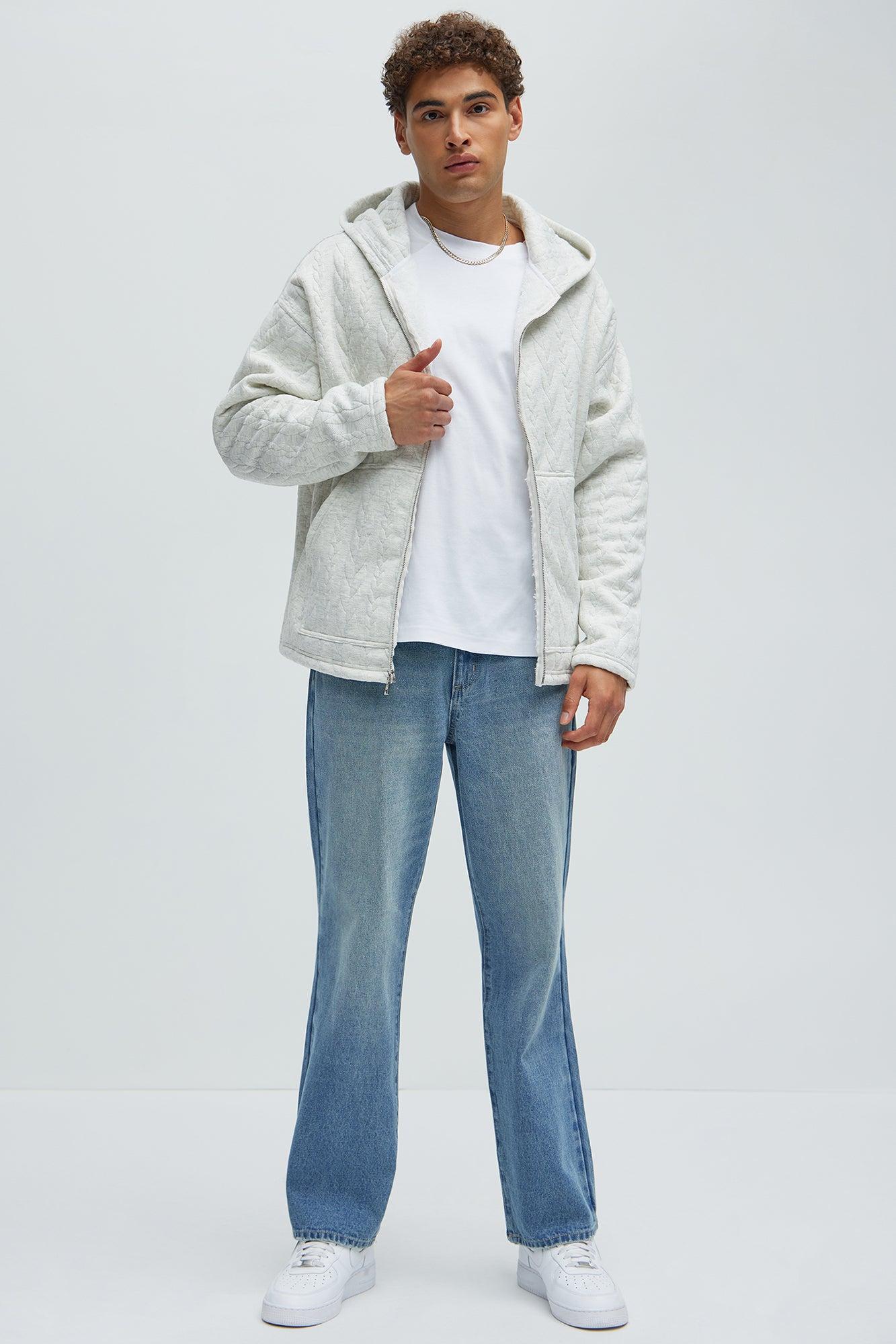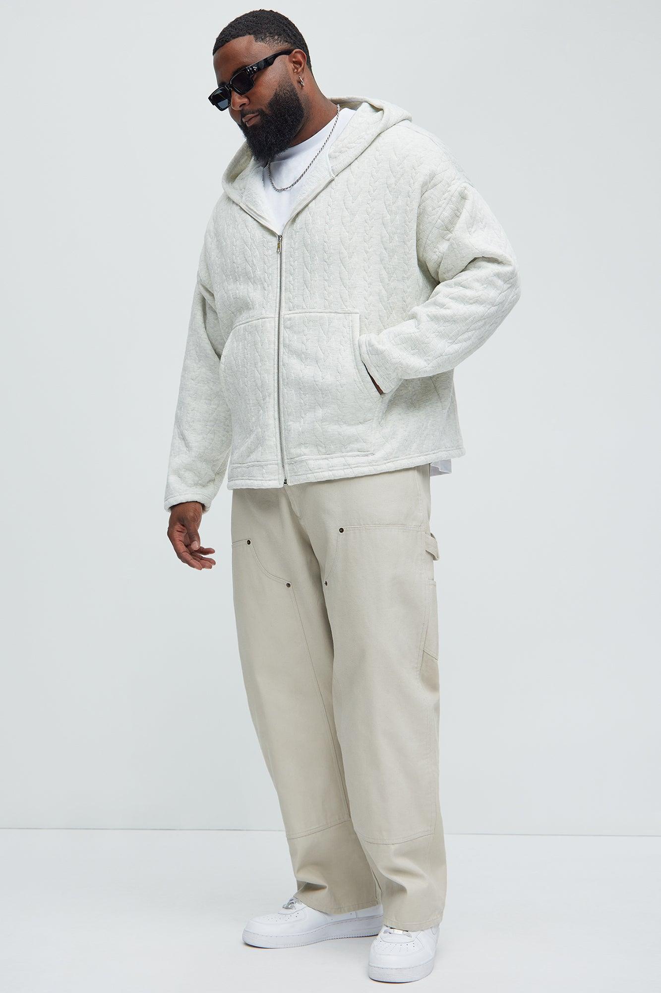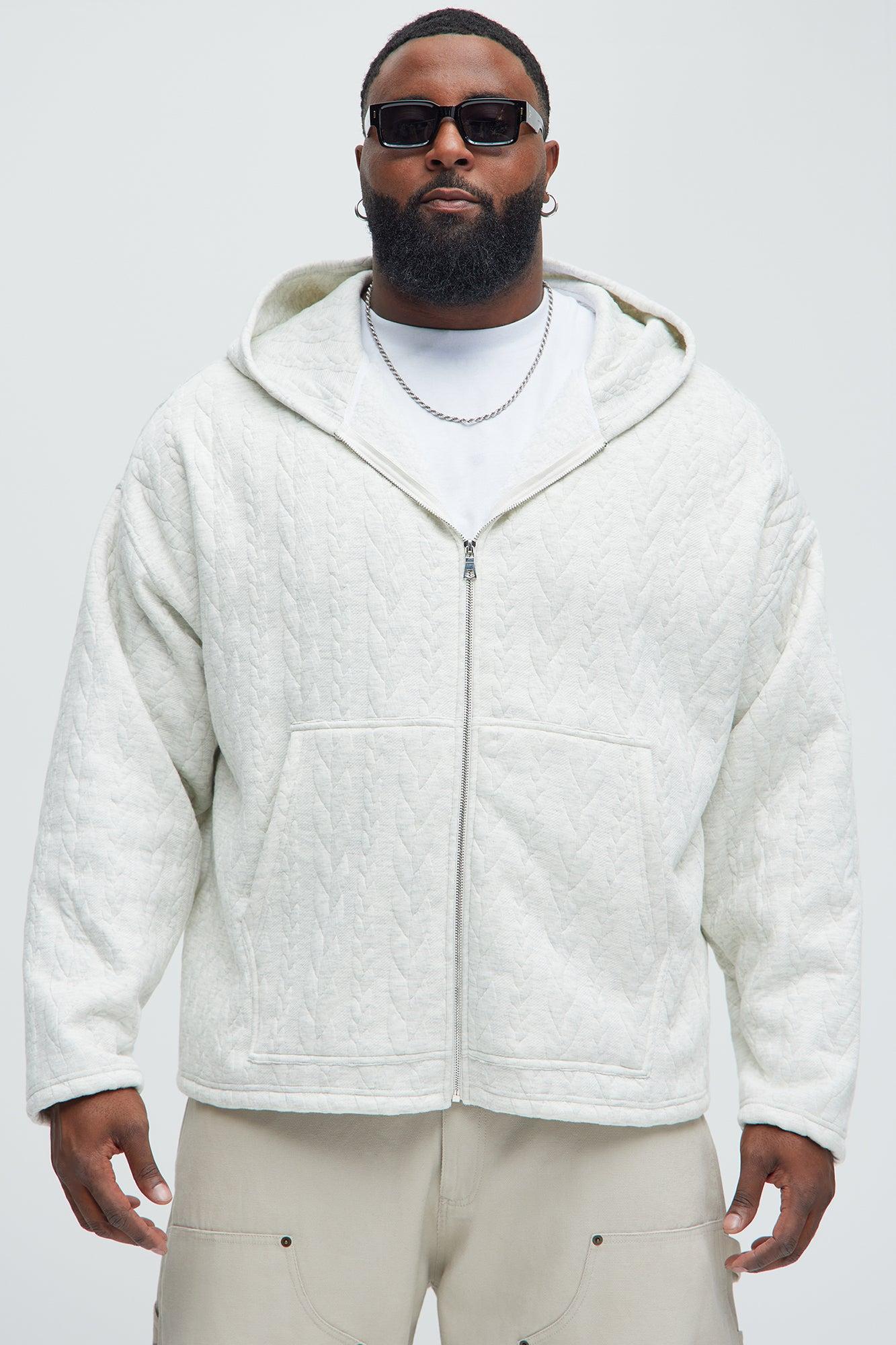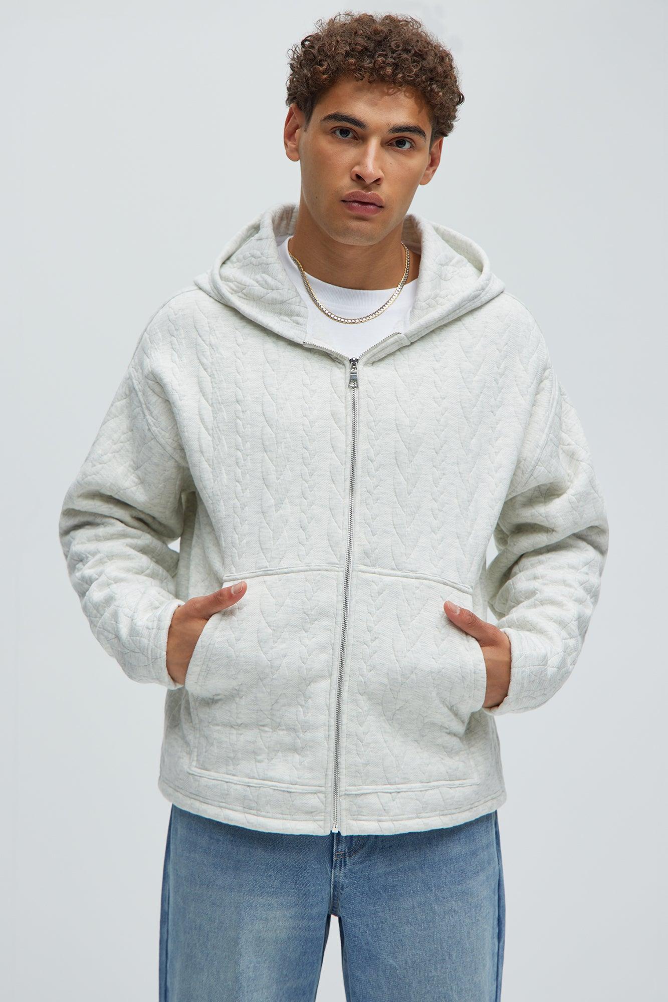 Lane Cable Knit Zip Up Hoodie - Heather Grey