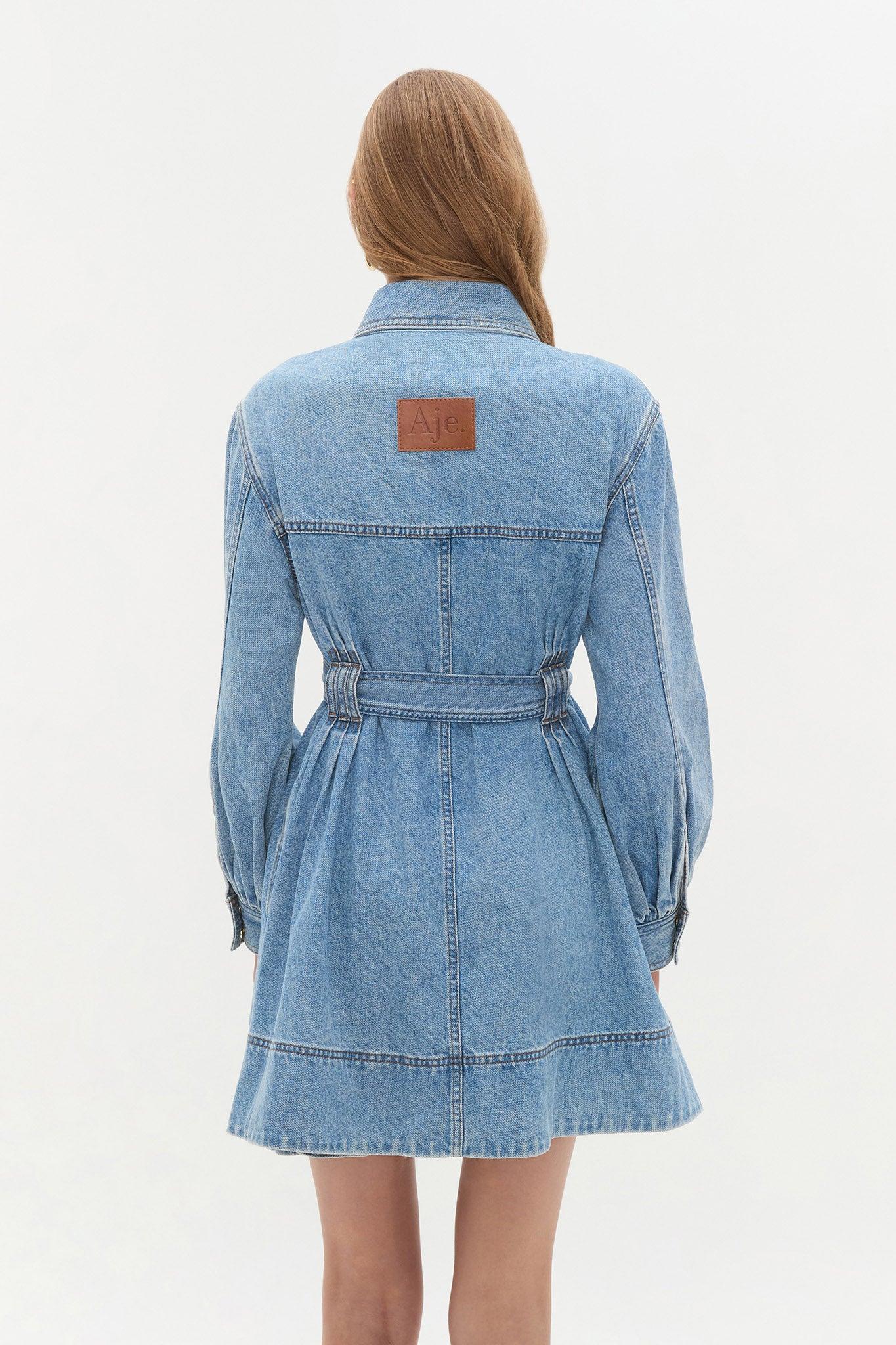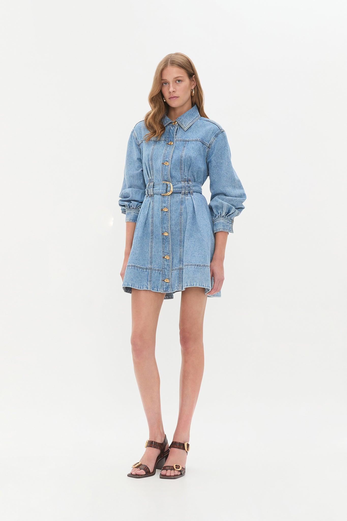 PRODUCT DETAILS Women's denim mini dress D-ring belt Twin belt loops Blouson sleeves Concealed press stud placket Front button placket Leather logo patch at bac...