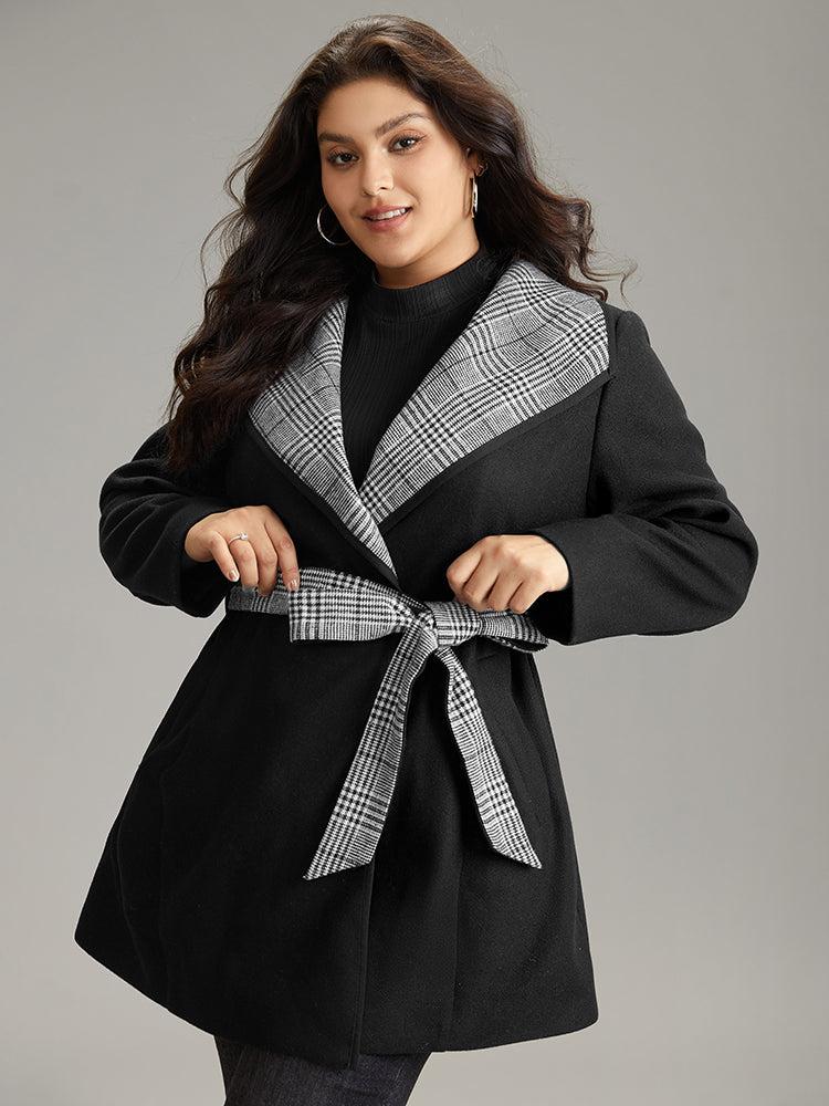 Shop Lapel Collar Patchwork Belted Contrast Coat now and redefine your style with confidence at BloomChic. Tailored for mid and plus-size women. This trendy Outerwear Women, sizes 10-30. Season:Winter;Color:Black;Pattern Type:Plaid;Details:Pocket, Patchwork, Belted, Contrast, Lined;Pocket:It is perfectly sized to carry a phone.;Belt:Belt;Lining:Lining