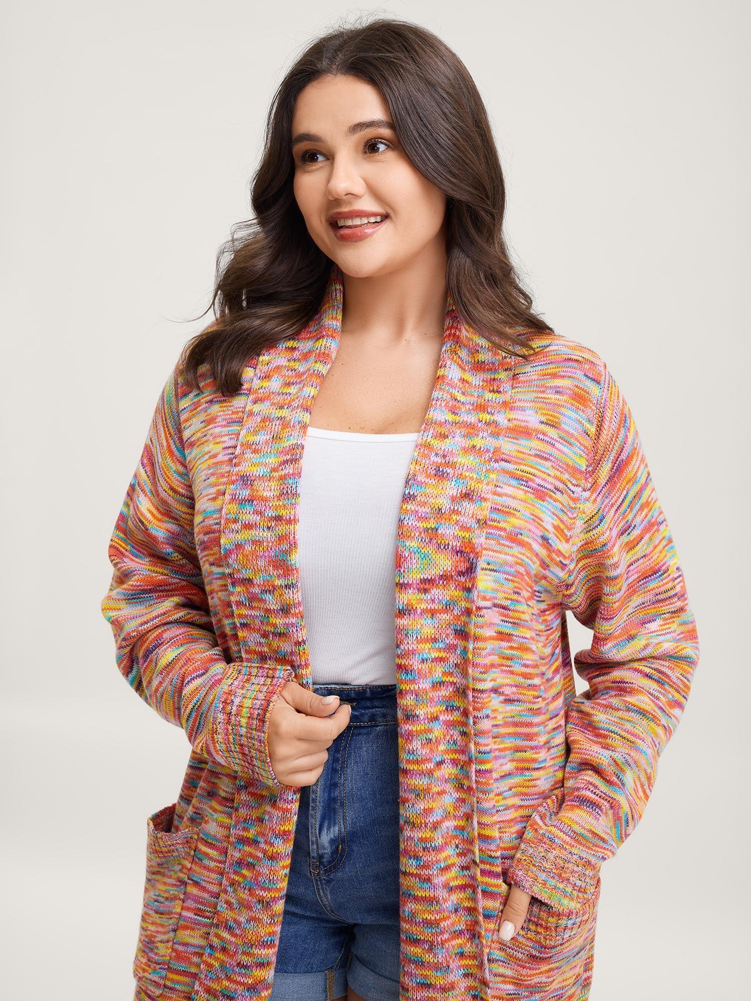 Plus Size Colour Heather Pocket Open Front Cardigan Multicolor Women Casual Loose Long Sleeve Dailywear Cardigans BloomChic 18-20/2X
