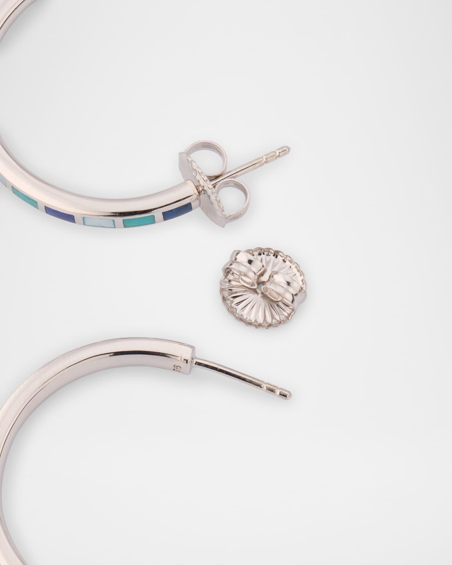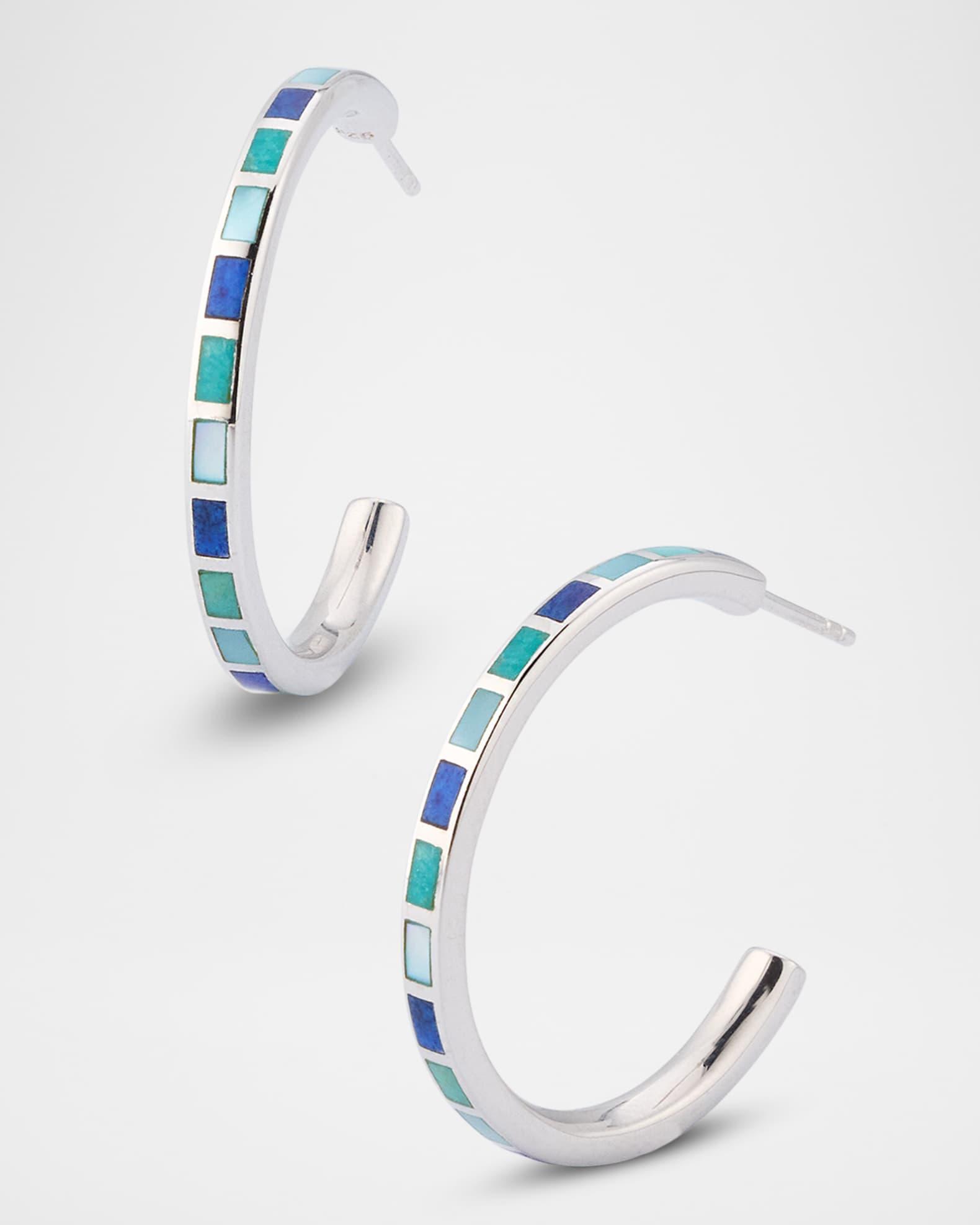 Jan Leslie hoop earrings Polished sterling silver Lapis, blue mother-of-pearl and turquoise inlay For pierced ears Wipe clean Imported All stones are naturally one-of-a-kind, hand-selected by Jan Leslie for best match.