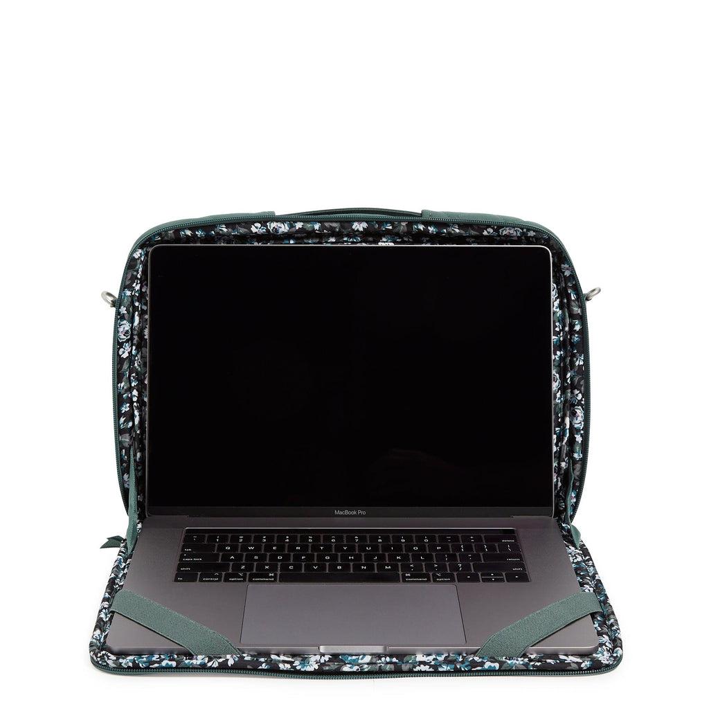 Whether it's for work or for fun, your laptop will look stylish in this pretty protector. Crossbody strap keeps your hands free and the padded laptop pocket protects your tech. Made from quilted, sleek, water-repellent polyester Exterior features a front slip pocket Two zip compartments Front compartment: a mesh slip p