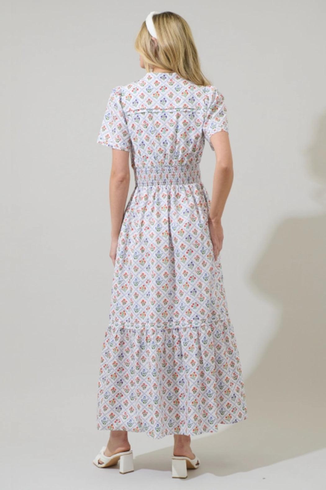 Feel extra pretty when you wear the Lara Floral Belraj Poplin Maxi Dress. A split neckline framed by short sleeves tops a flowy midi skirt that's separated by a smocked waistline. Pleated layer details sweep across the bottom third of the skirt to create a single tier. Wear it heels to go along.