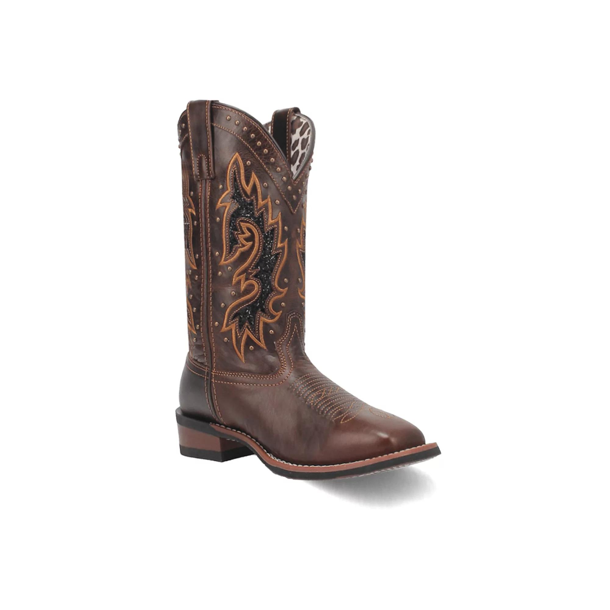 Leave a trail of your sophisticated choice in fashion by stepping out in the Laredo Lockhart Western Boots. Framed in a broad square toe silhouette with a stockman heel, these contemporary cowboy boots have got a classic touch with the eye-catching western stitched detailing and riveted accents on the premium leather upper. With the textile lining and the removable orthotic footbed, the footwear ensures long-lasting comfort. Pull-on style. Rubber outsole. Imported. Measurements: Heel Height: 1 in Weight: 3 lbs Circumference: 12 in Shaft: 11 in Product measurements were taken using size 7, width B - Medium. Please note that measurements may vary by size.