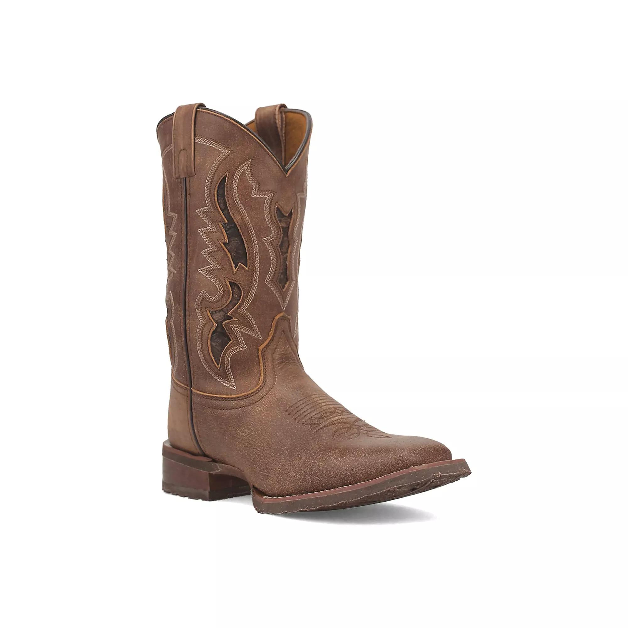 The Laredo Martin boot is constructed of soft tan leather and is set apart by the dark brown underlay design on the upper. The underlays are outlined by multi-row stitching. Features broad square toe, Ortholite cushion insert, stockman heel and lightweight rubber outsole.